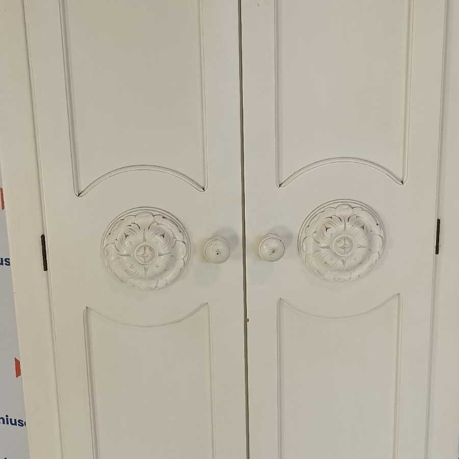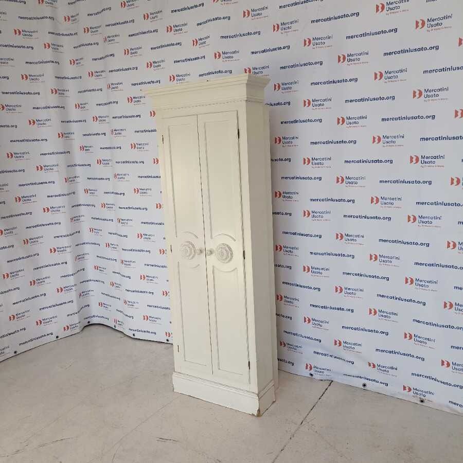 Armadio da nicchia laccato bianco. Struttura in legno intagliato e laccato. Richiede piccoli interventi di restauro.