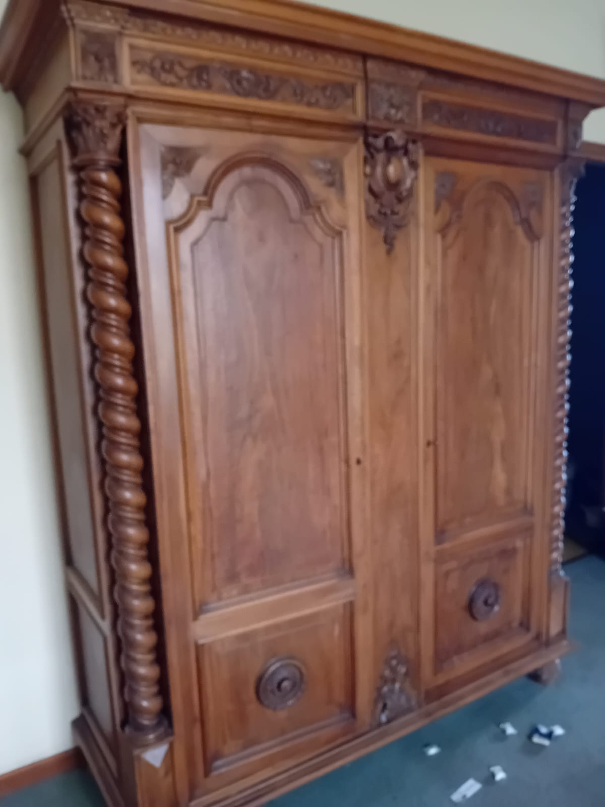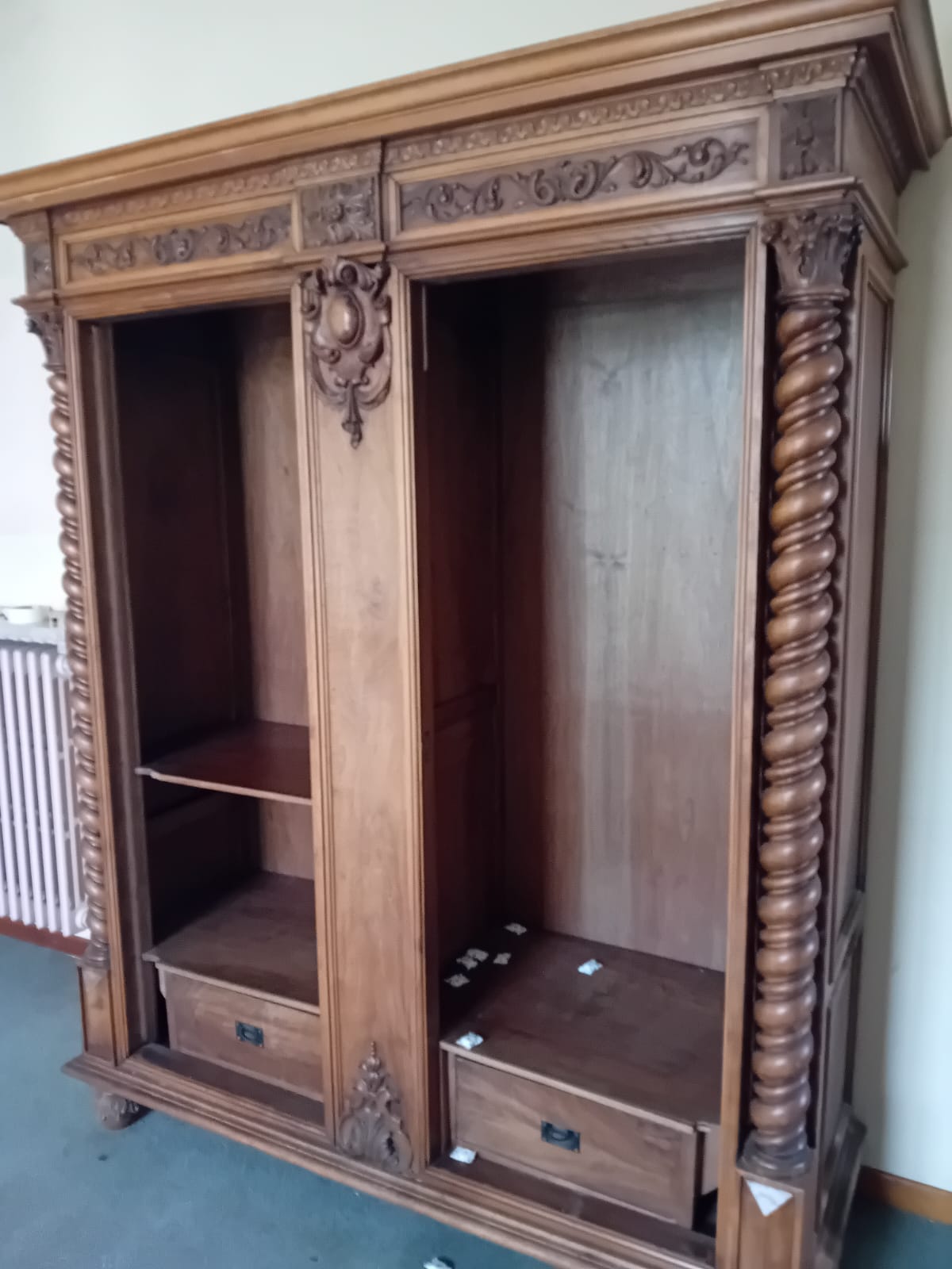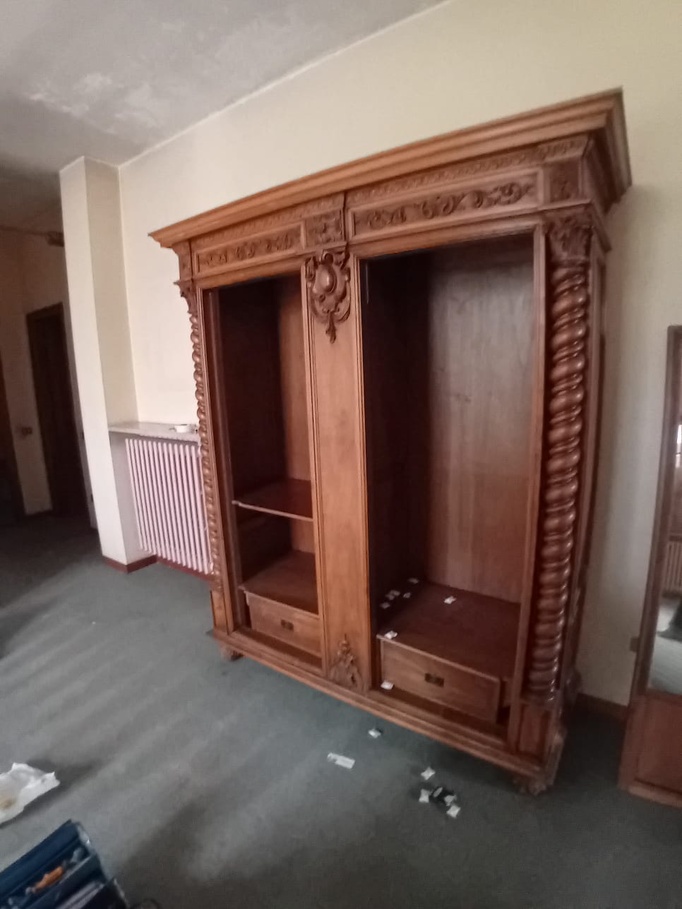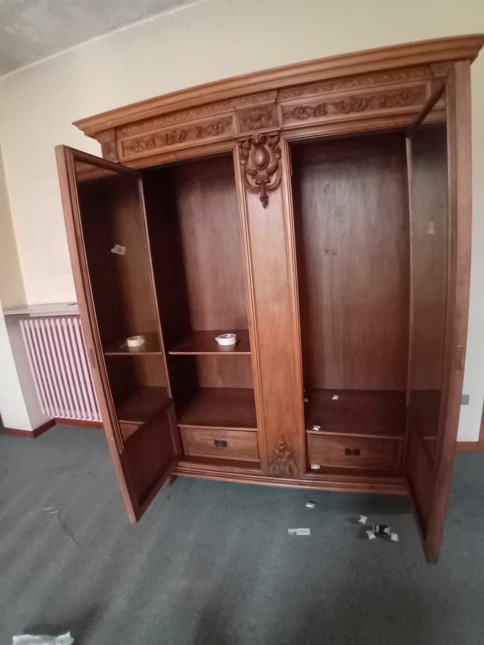 Armadio Neorinascimento primi 900. Struttura in legno intagliato. Richiede restauri.