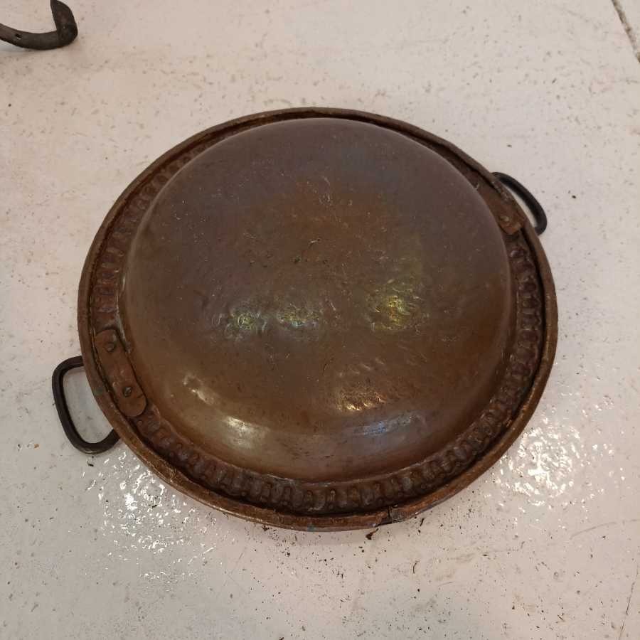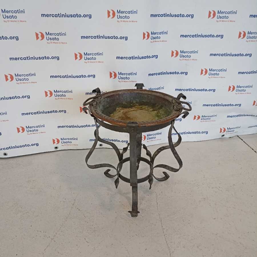 Braciere in ferro battuto di metà 900. Struttura in ferro battuto con sommità rimovibile in rame sbalzato. In buone condizioni.