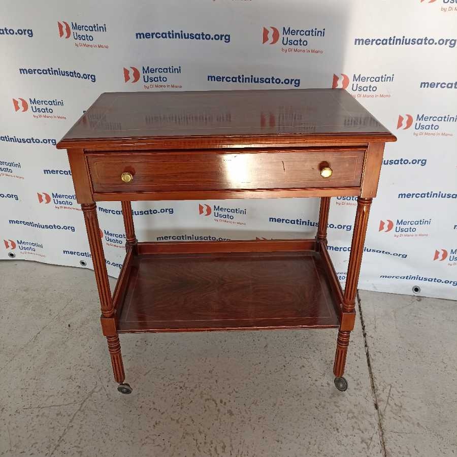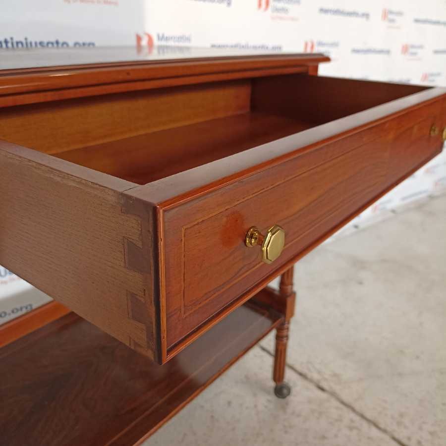 Carrellino con cassetto in stile. Struttura in legno tornito. In buone condizioni.