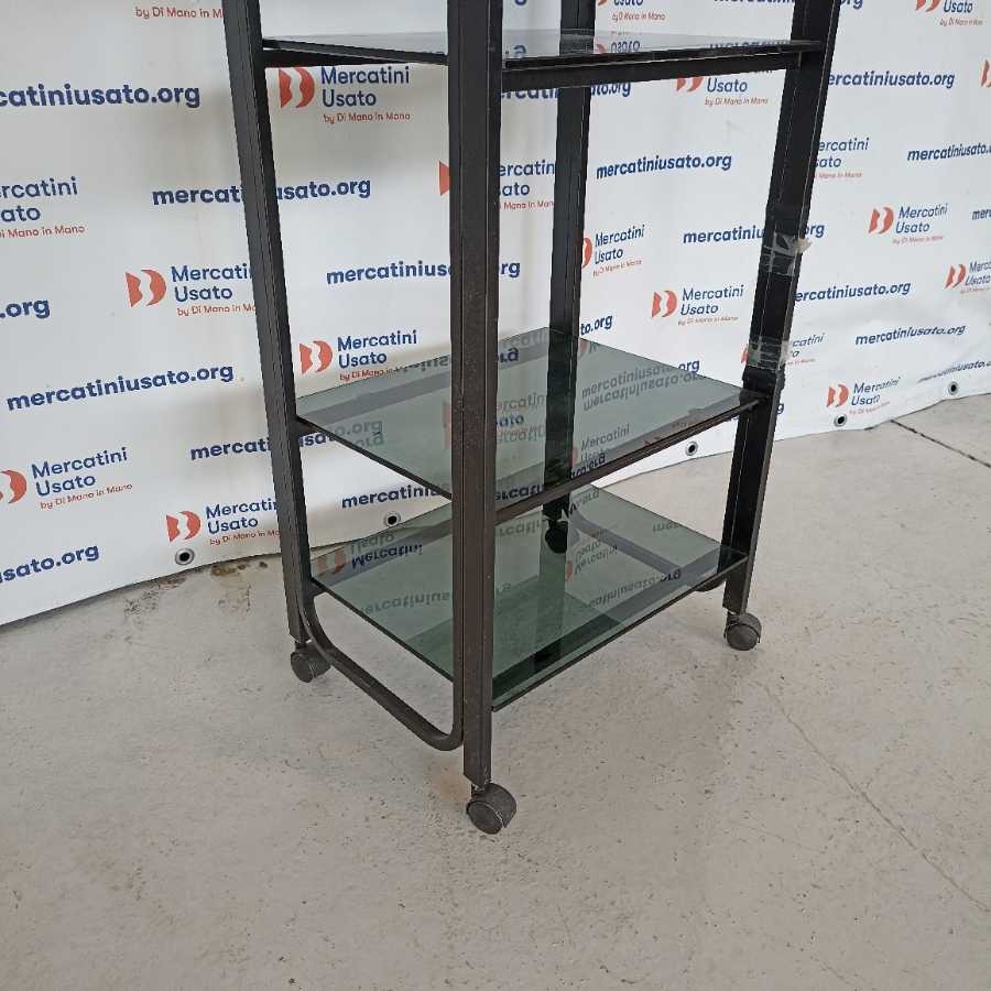 Carrellino con vetri fumé. Struttura in metallo laccato nero con 4 ripiani in vetro fumé. In buone condizioni.