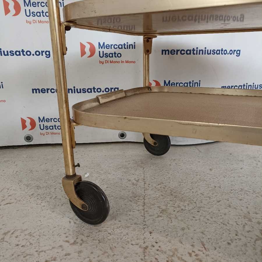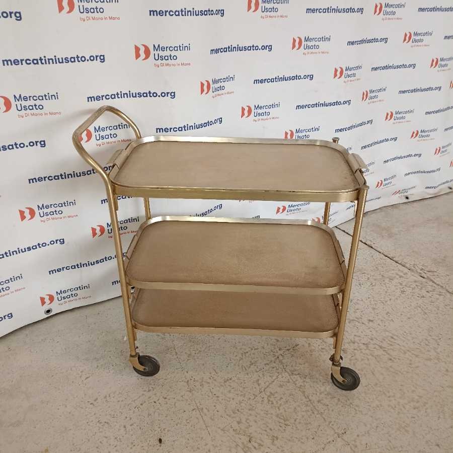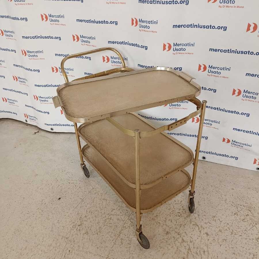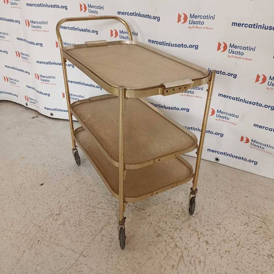 Carrellino Vintage anni 60. Struttura in metallo dorato con 3 ripiani. Presenta segni del tempo.