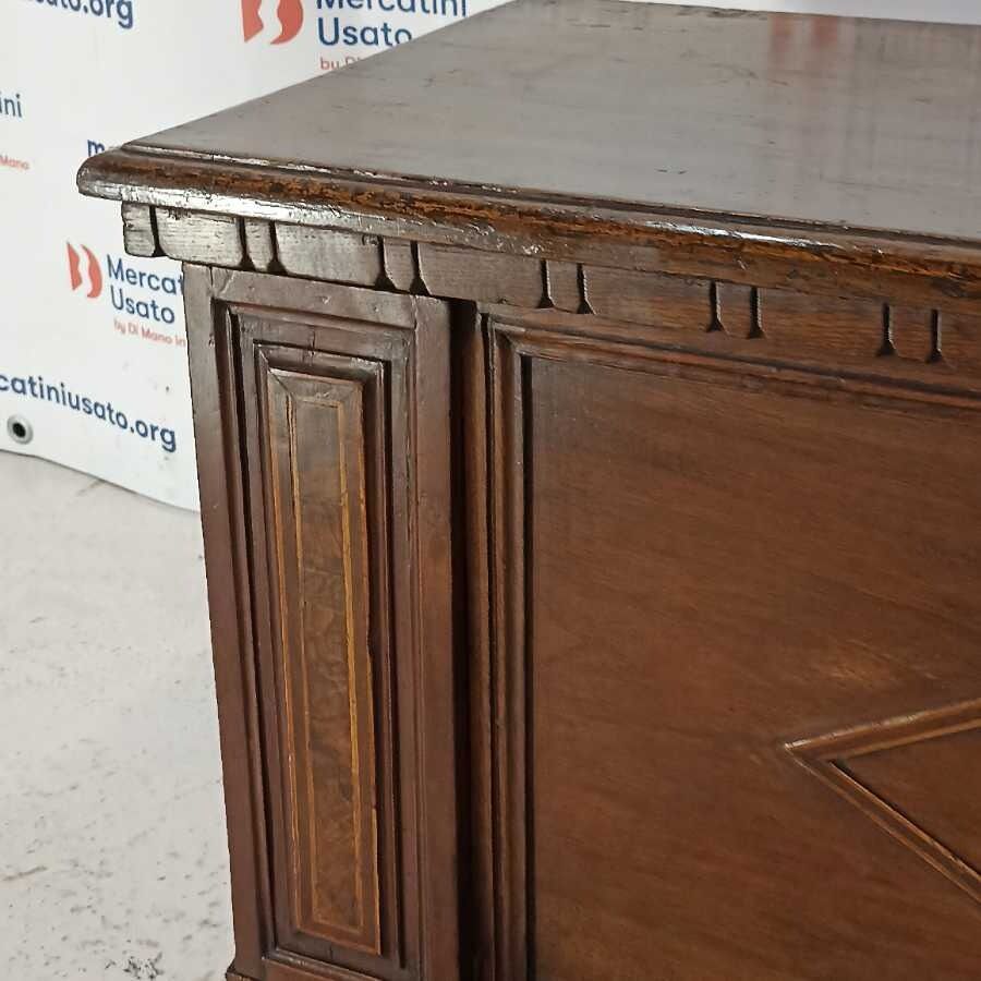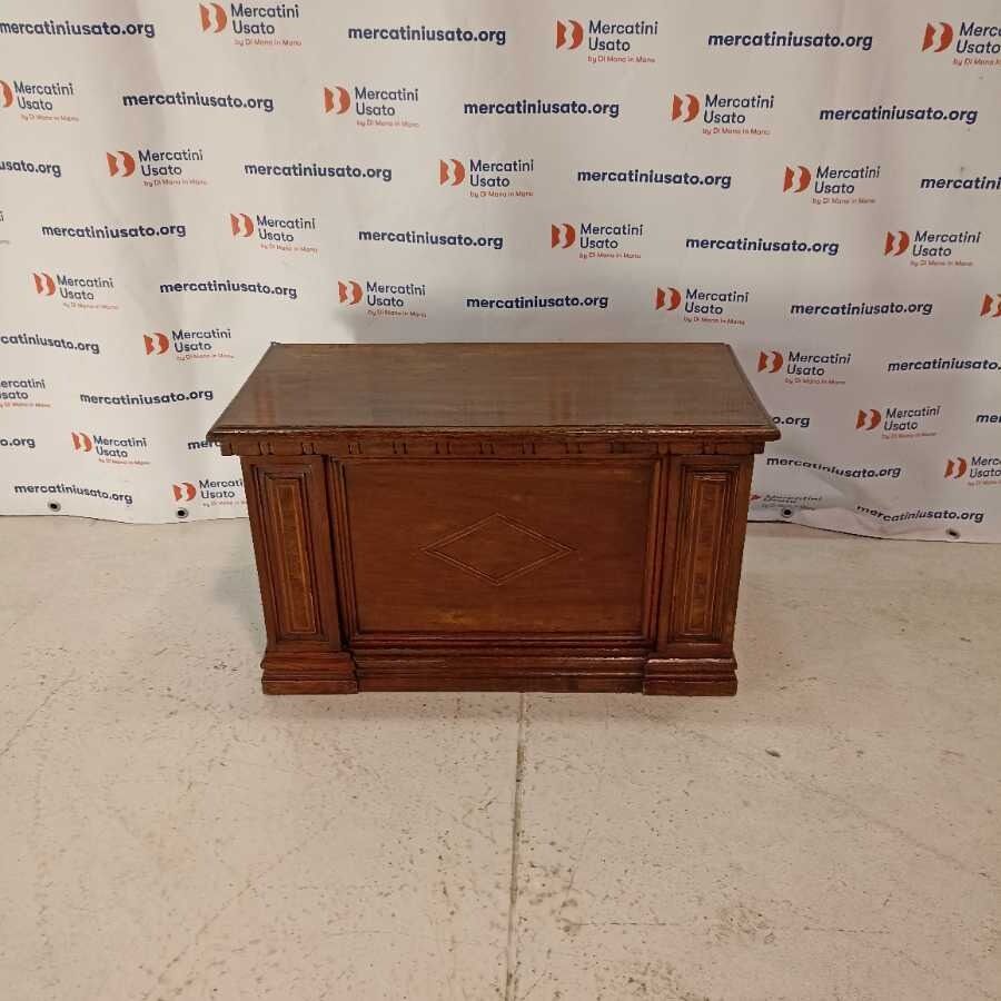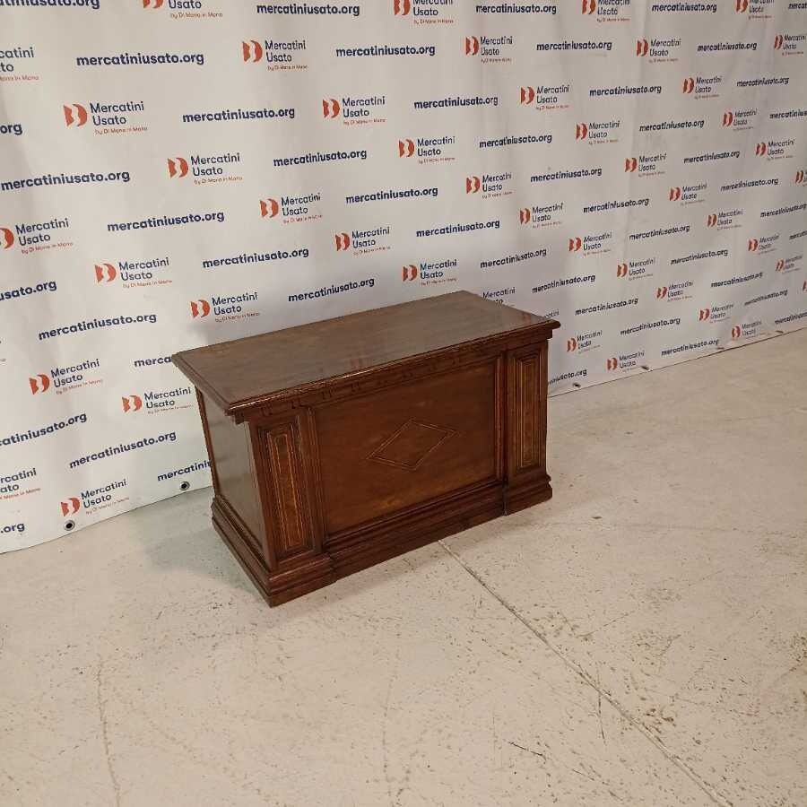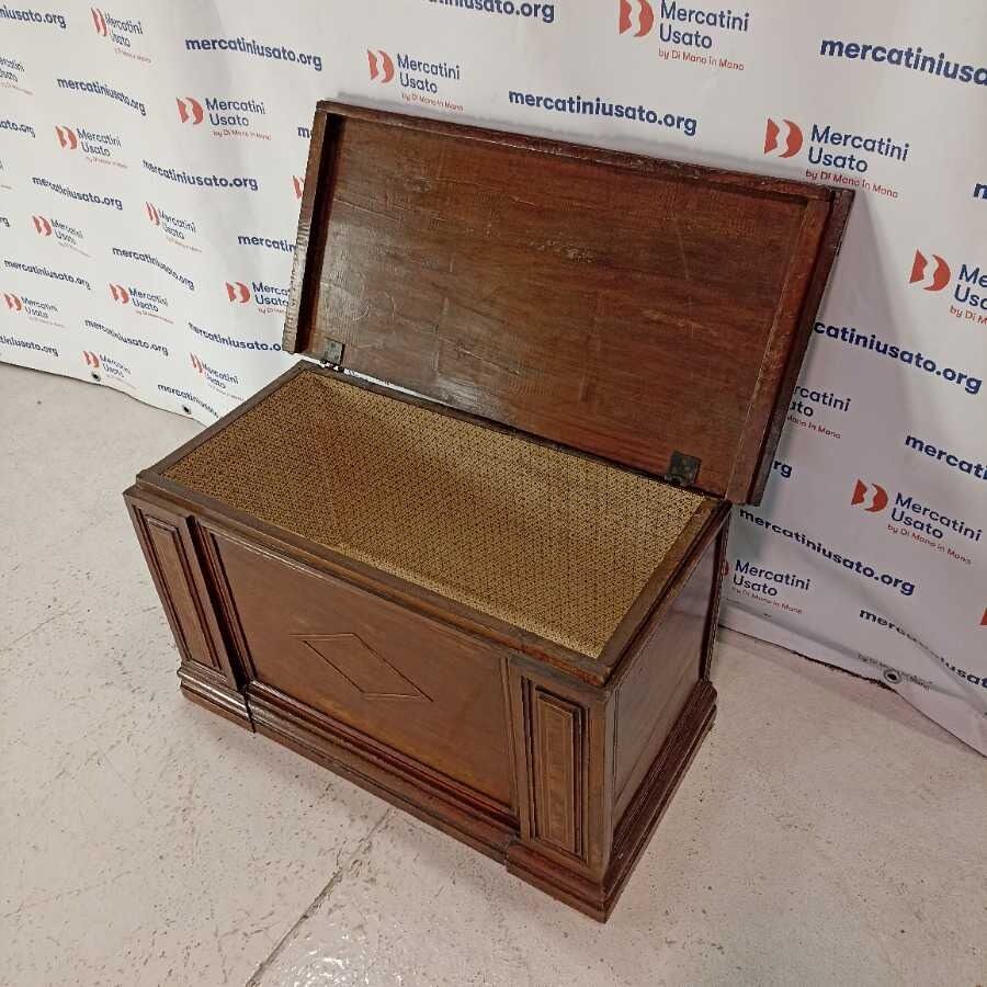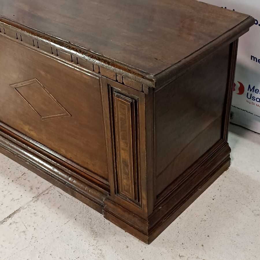 Cassapanca in legno di Noce massello. Presenta intagli. Richiede piccoli interventi di restauro.
