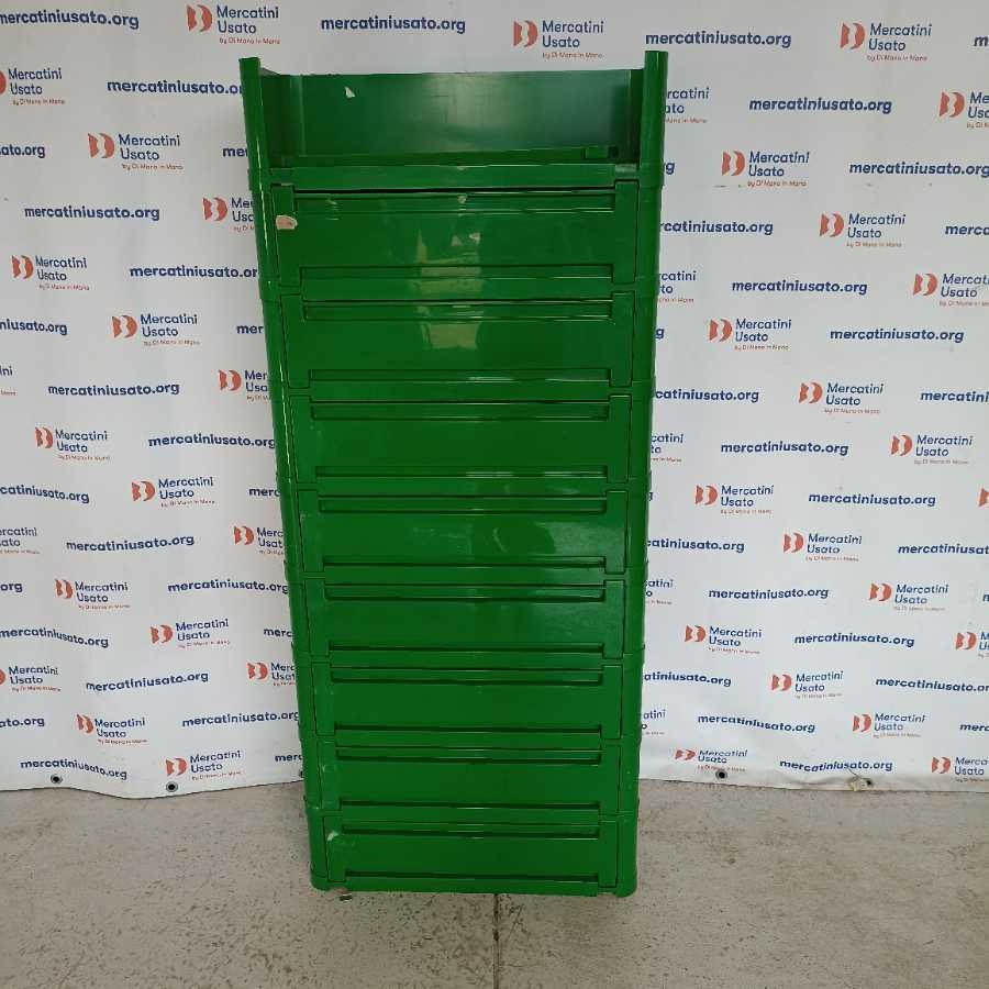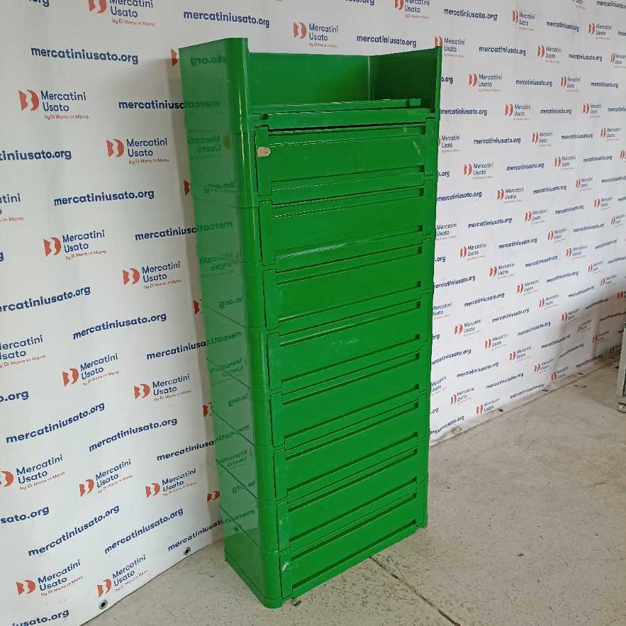 Cassettiera Design Olaf Von Bohr per Kartell anni 70. Struttura in materiale plastico verde. Manca il coperchio.