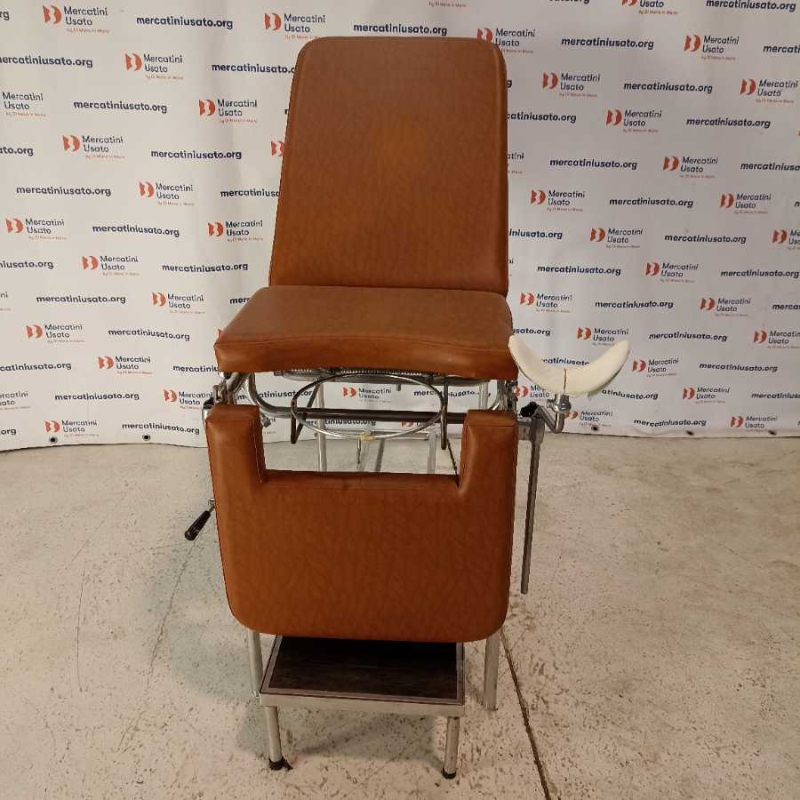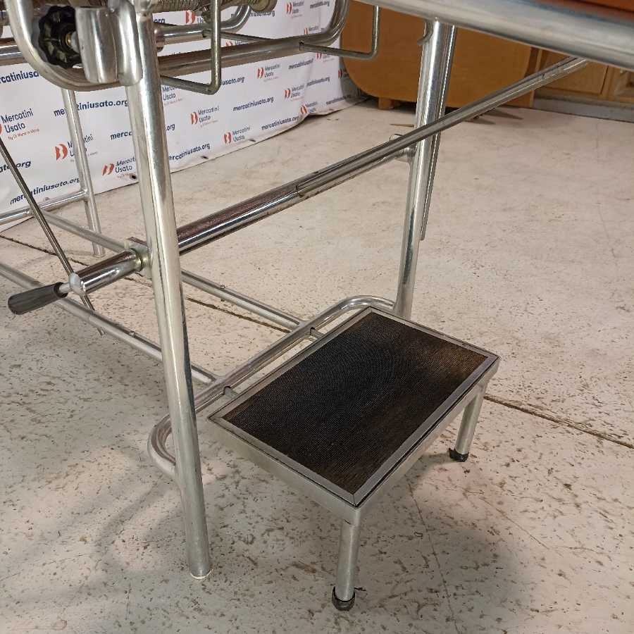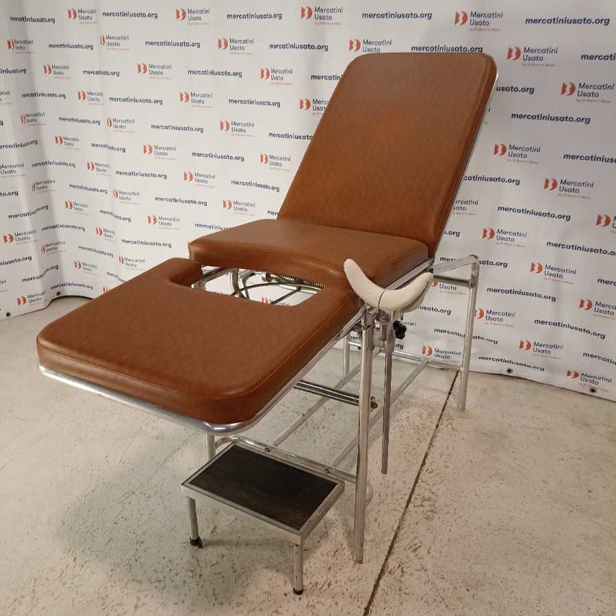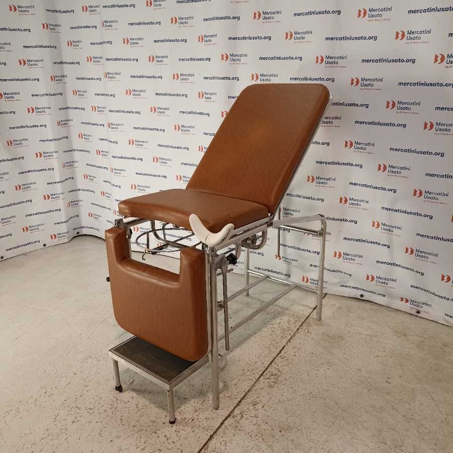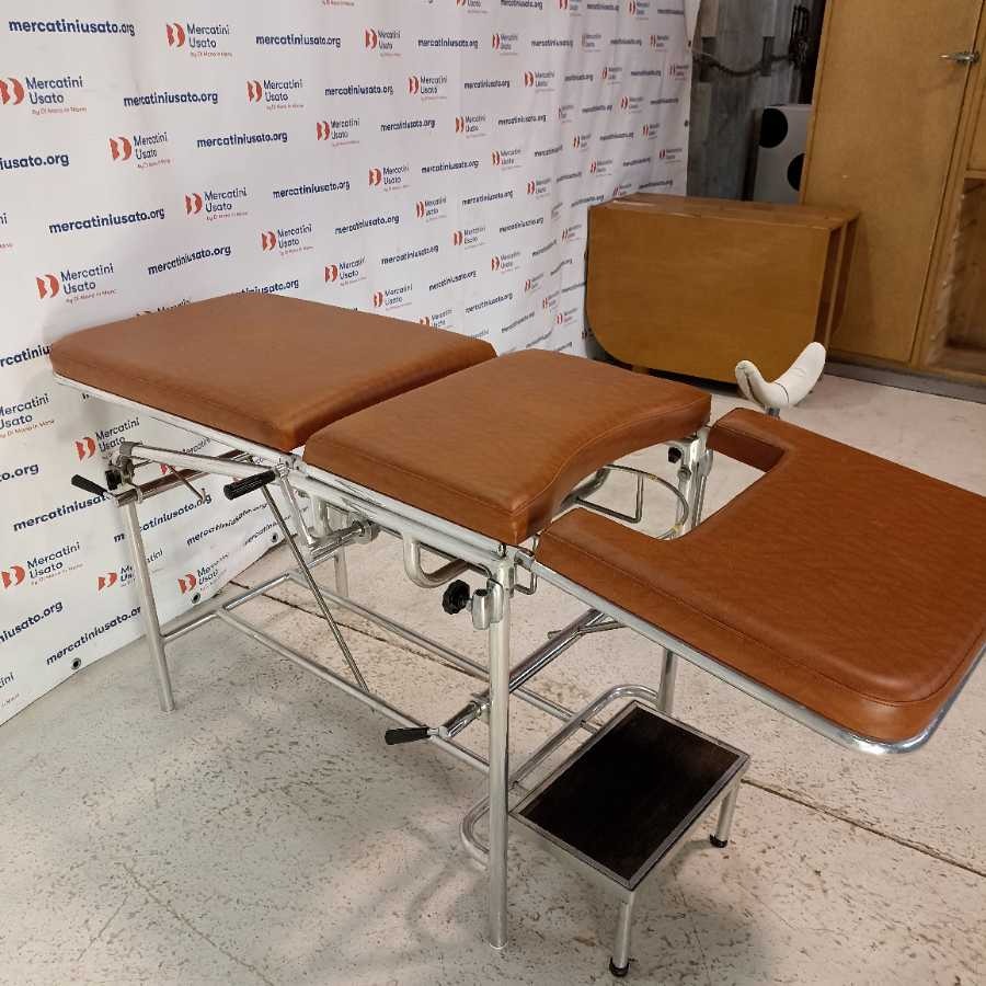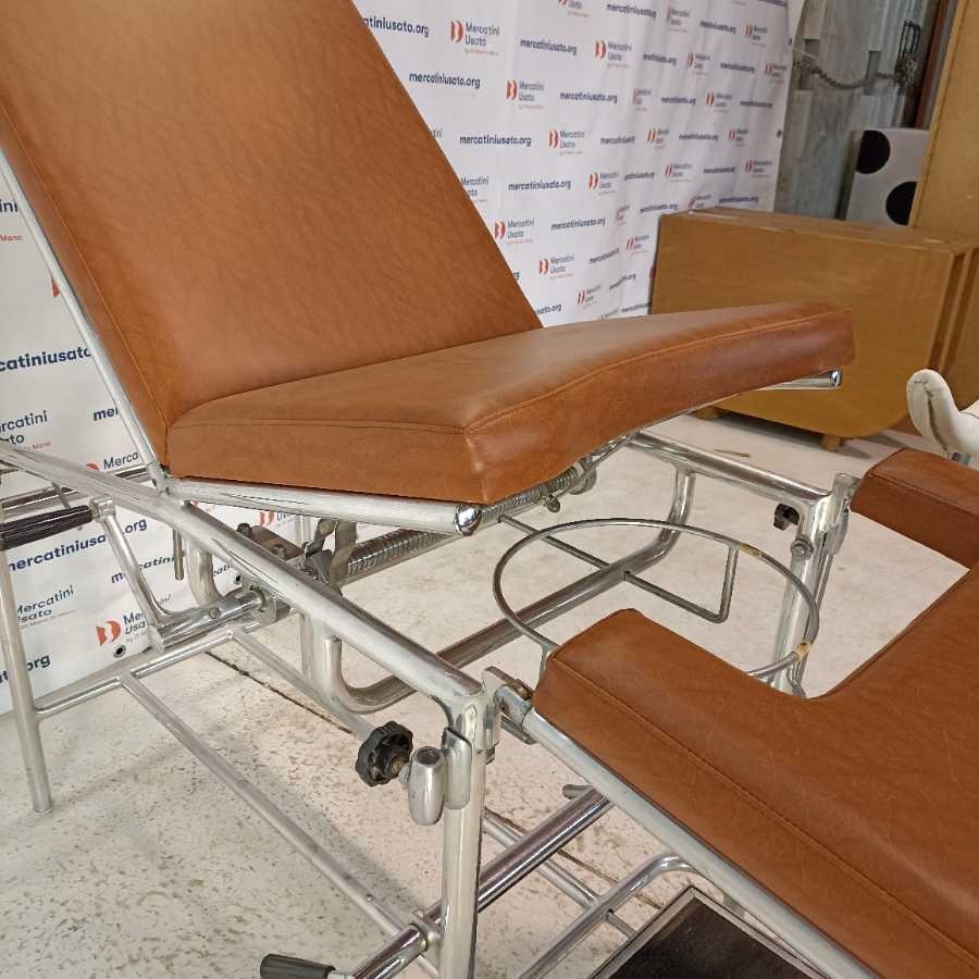 Lettino da Ginecologo. Struttura in tubolare di acciaio inox con seduta imbottita rivestita in ecopelle. In buone condizioni. Manca un poggia gamba.