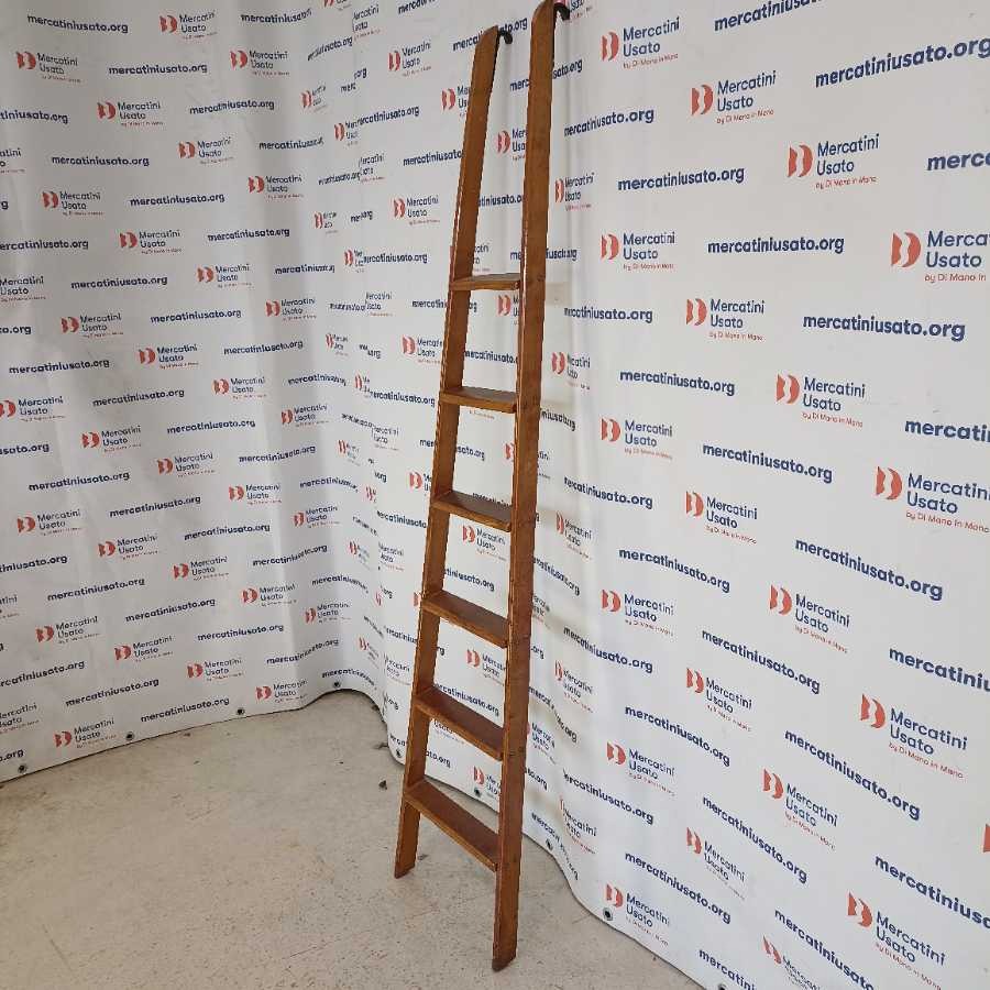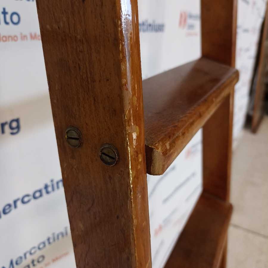 Scala a pioli da Biblioteca Vintage. Struttura in legno massello. In buone condizioni.