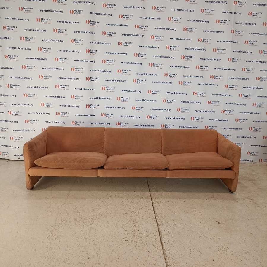 Divano 3 posti stile Maralunga Vintage. Rivestimento in tessuto con cuscini sfoderabili. Presenta segni di usura.