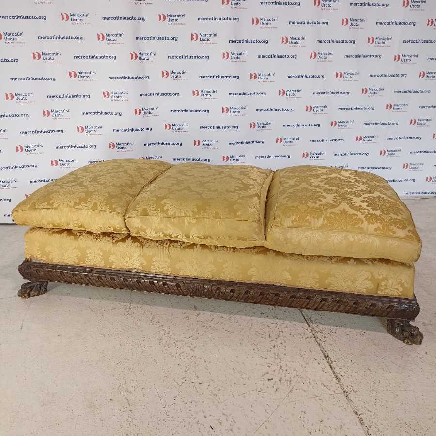 Dormeuse Divano Stile Neorinascimento della prima metà del 900. Struttura in legno intagliato con rivestimento in tessuto damascato. Richiede piccoli interventi di restauro.