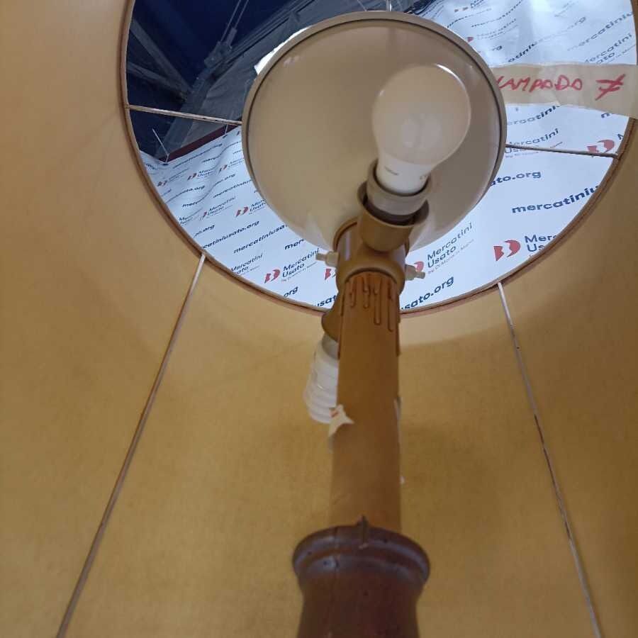 Lampada da terra in stile primi 900. Struttura in legno massello intagliato. Richiede revisione impianto elettrico.