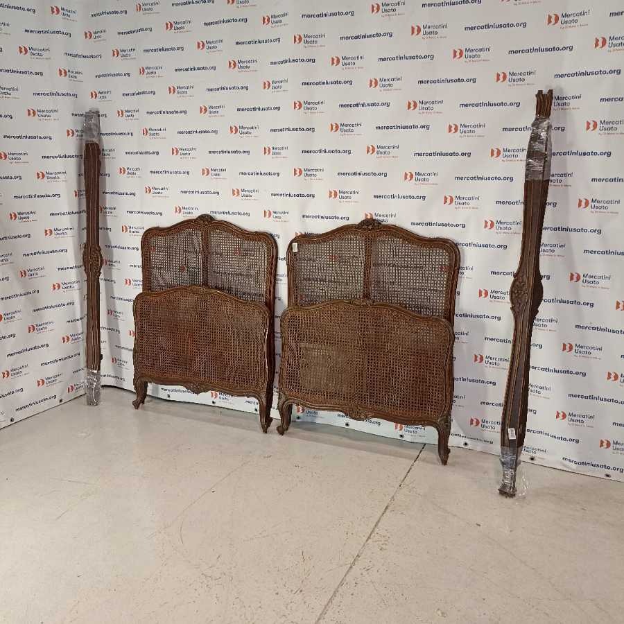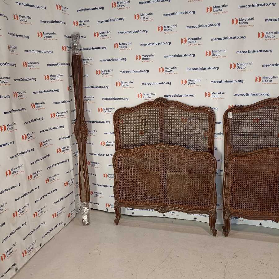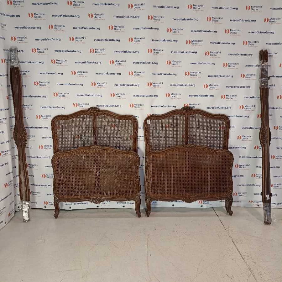 Coppia di Letti in Paglia di Vienna di metà 900. Struttura in legno intagliato con paglia di Vienna. Verranno forniti smontati.