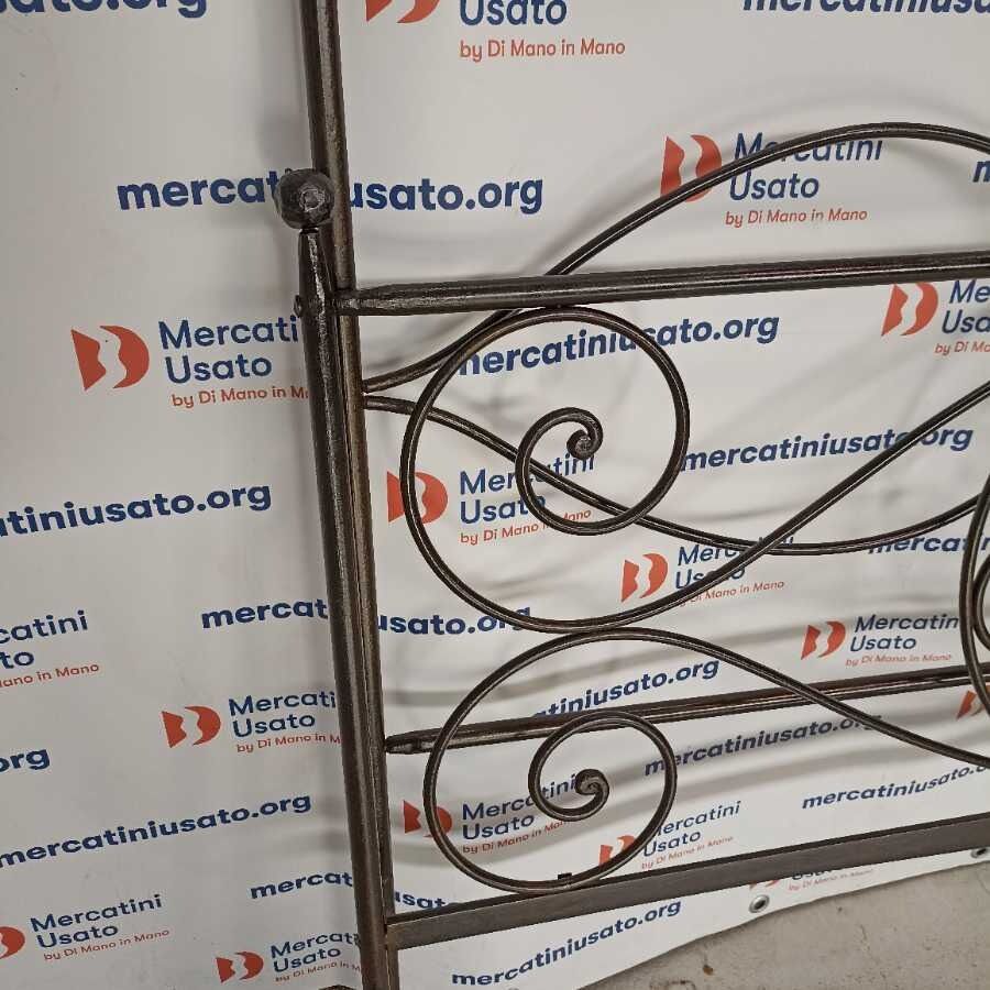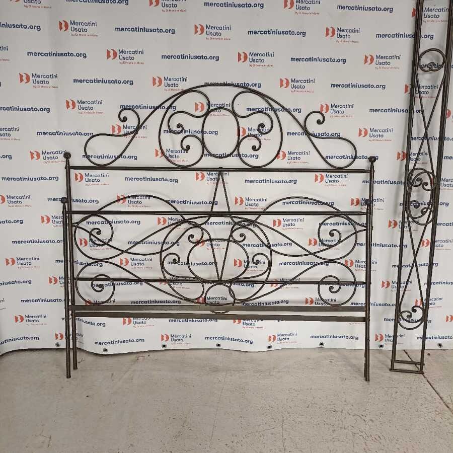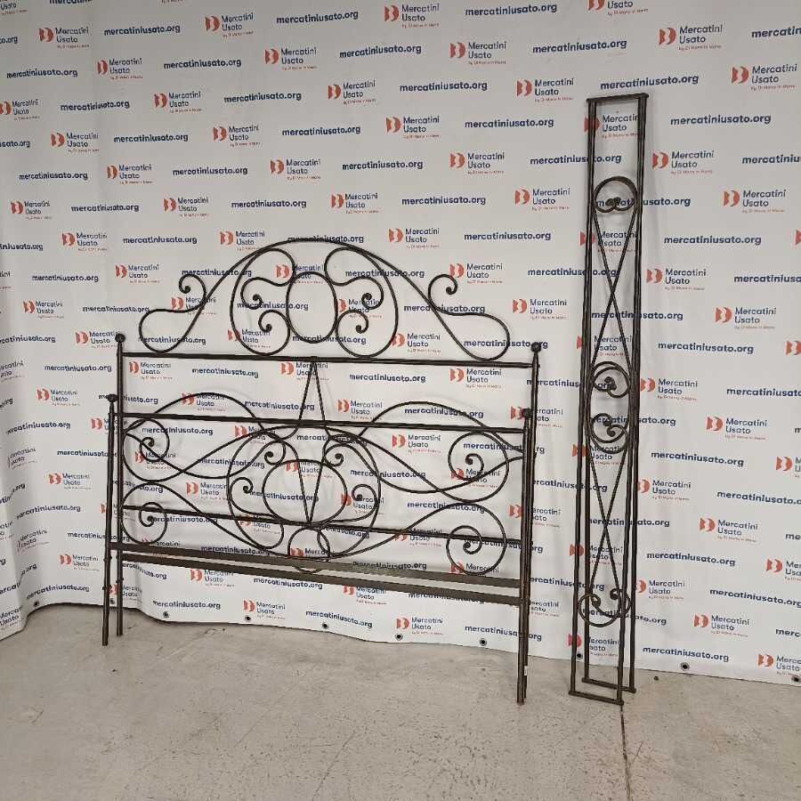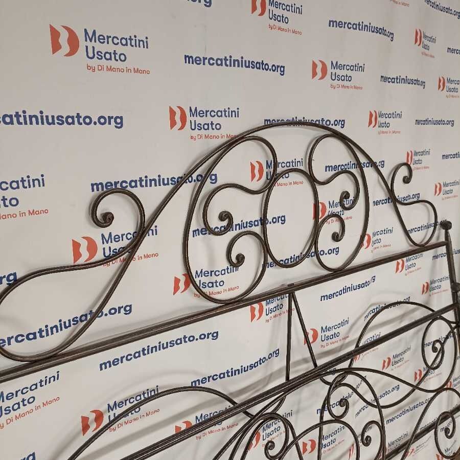 Letto alla Francese in ferro battuto. Struttura in pesante ferro battuto e laccato nero con riccioli. In buone condizioni. Verrà fornito smontato.