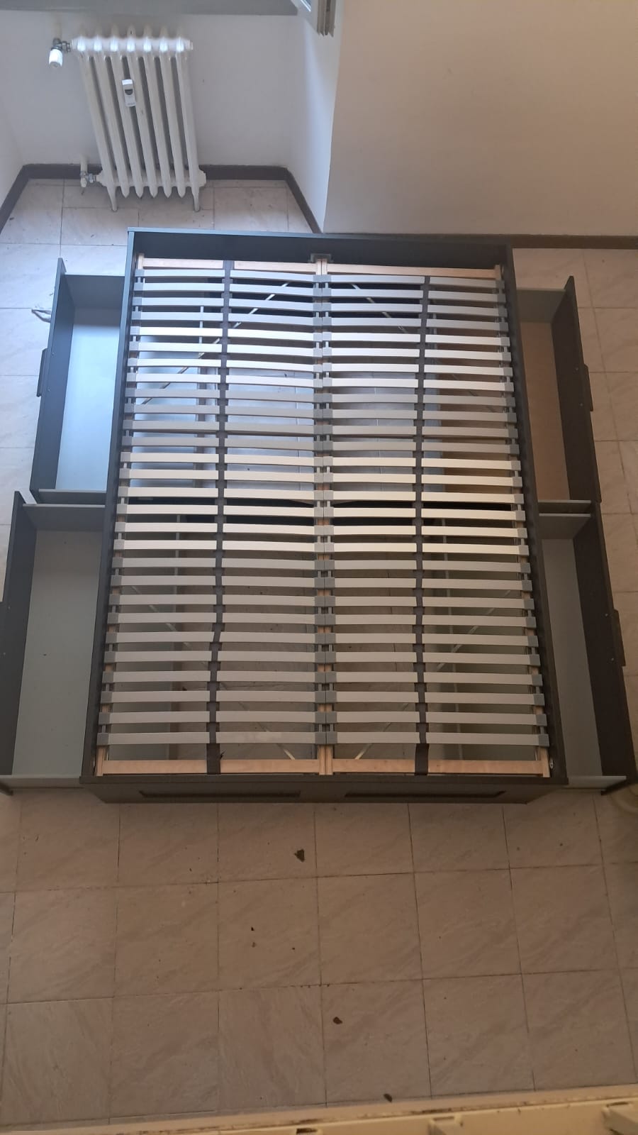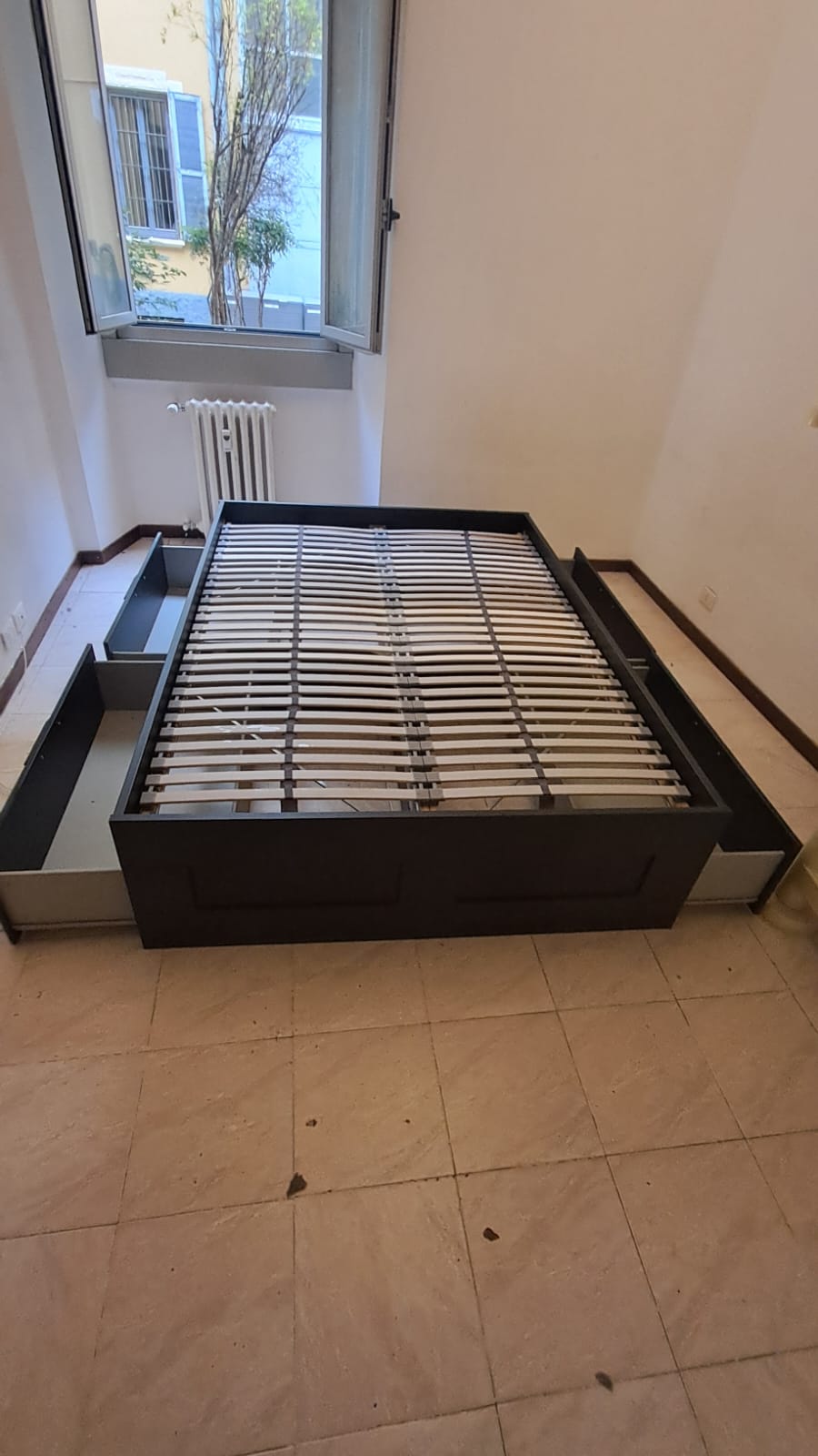 Letto matrimoniale Ikea Brimnes contenitore. Struttura in truciolare impiallacciato. Presenta 4 cassetti e rete. In buone condizioni.