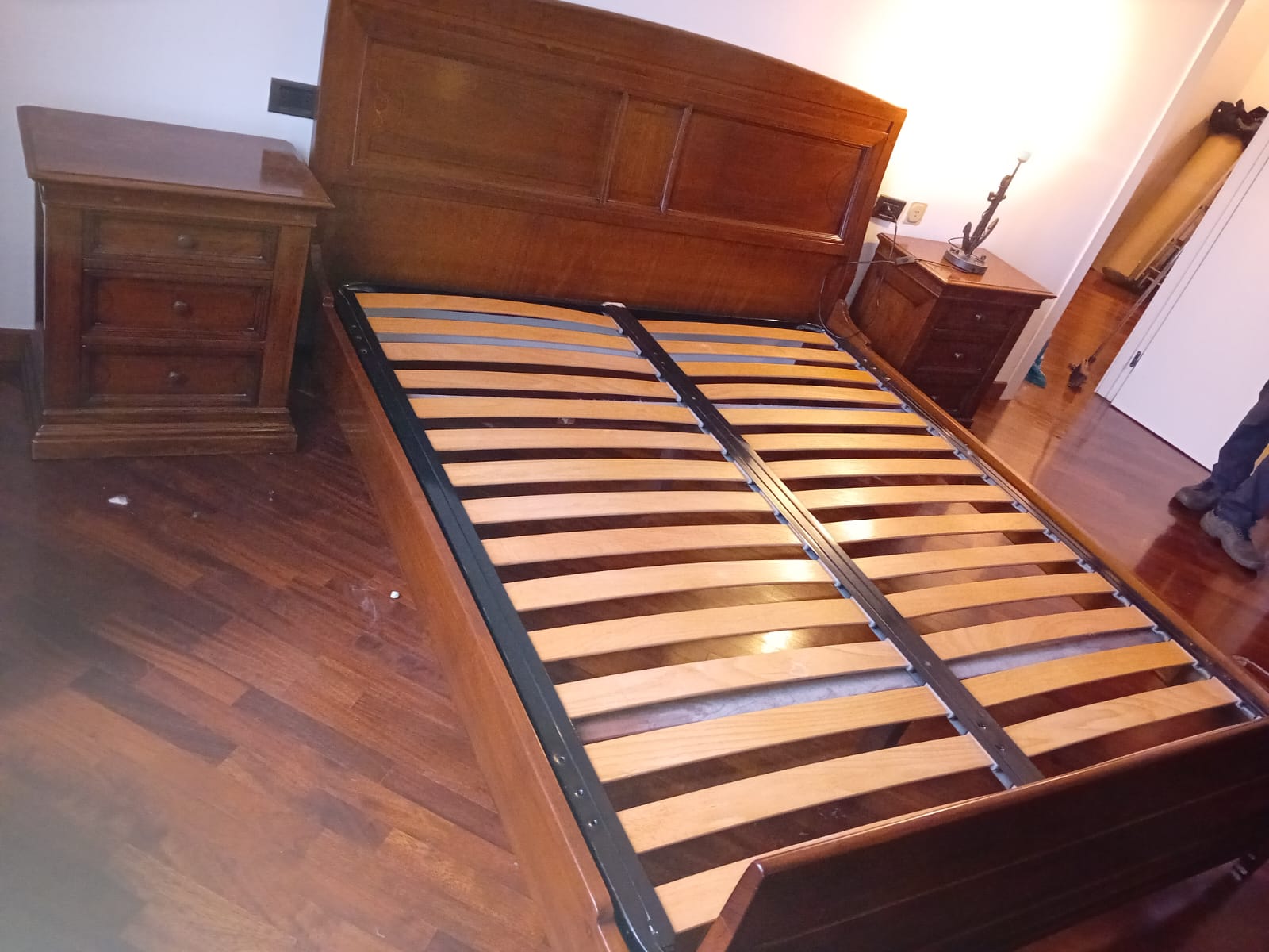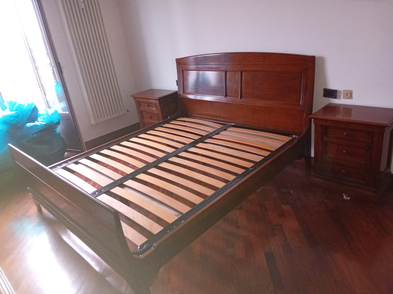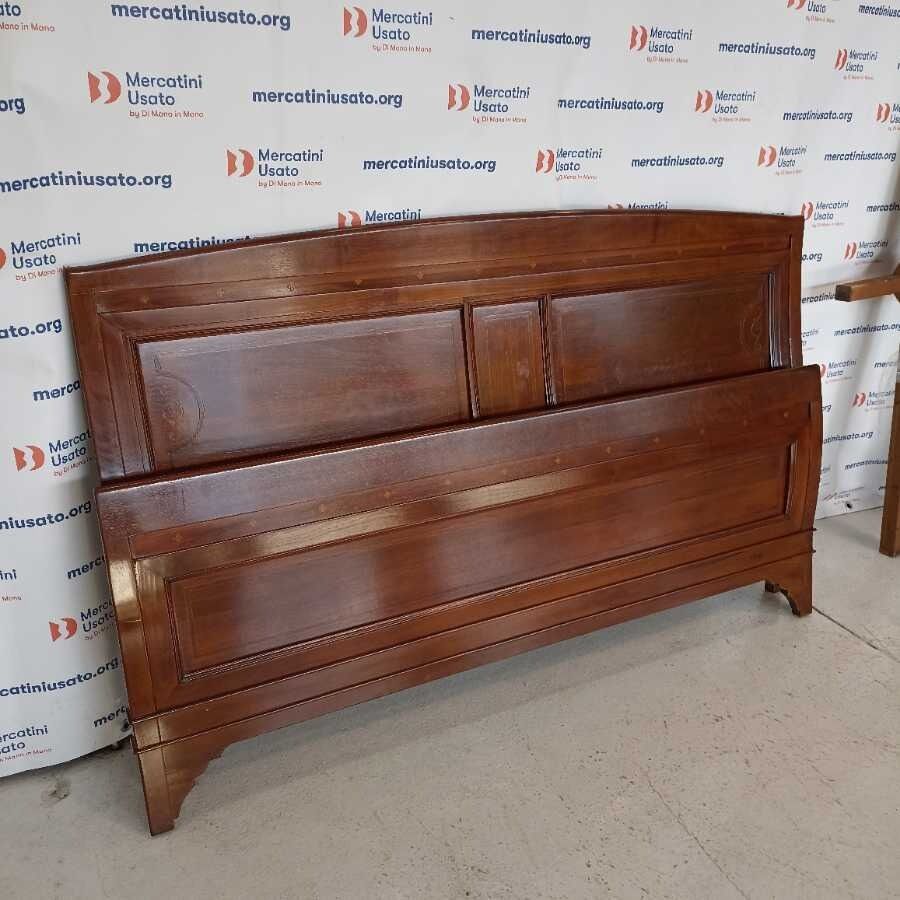 Letto matrimoniale Le Fablier. Struttura in legno massello con intarsi. In buone condizioni. Verrà fornito smontato.