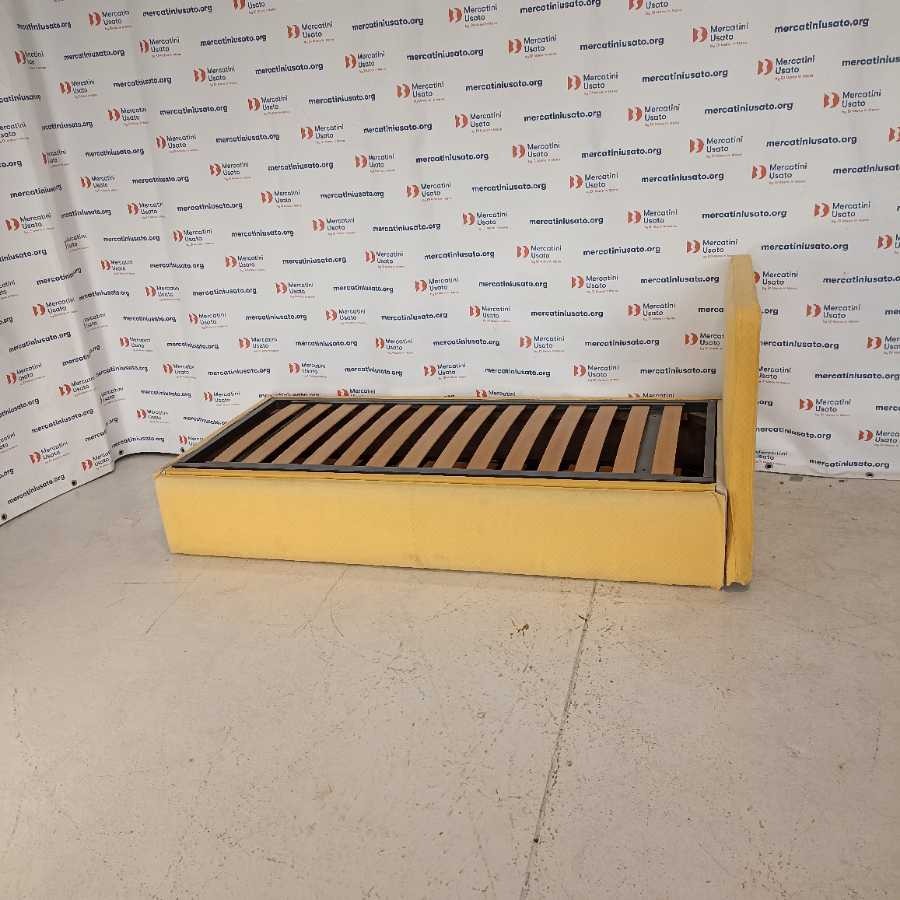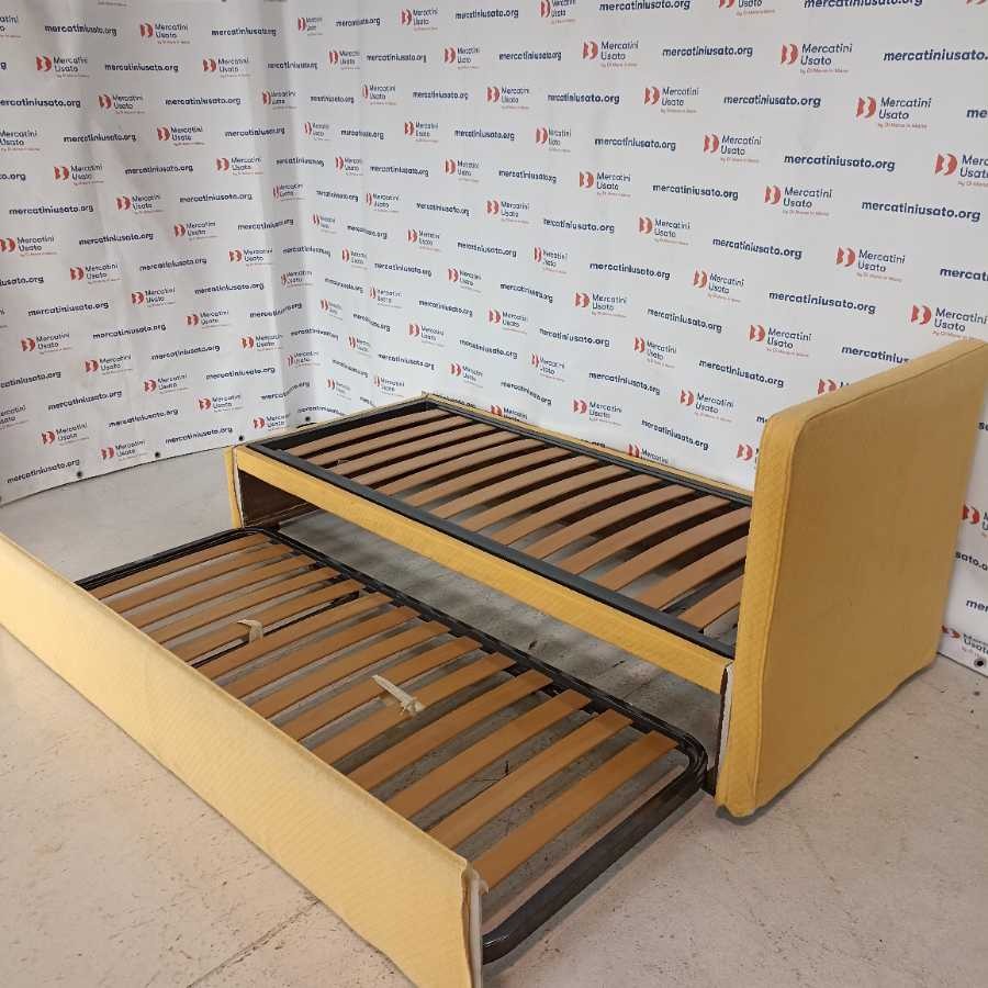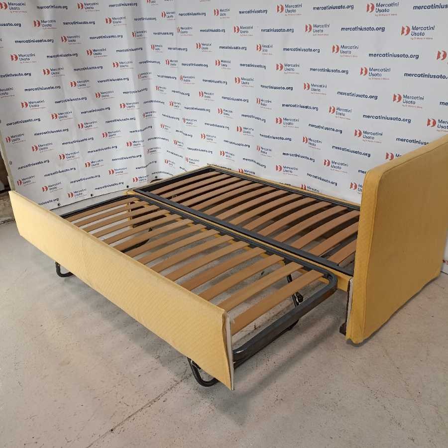 Letto singolo a canguro sfoderabile. Rivestimento in tessuto giallo. Espandibile a 2 posti. Presenta piccoli segni di usura.