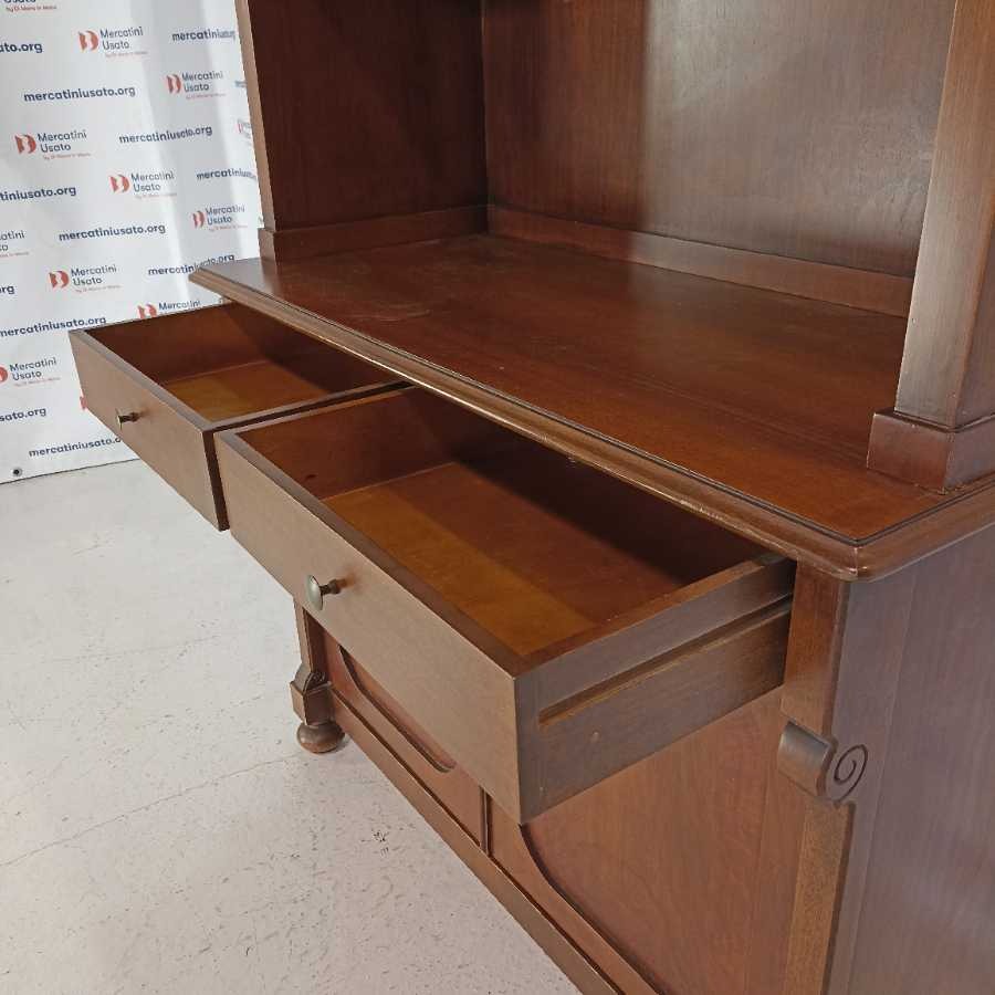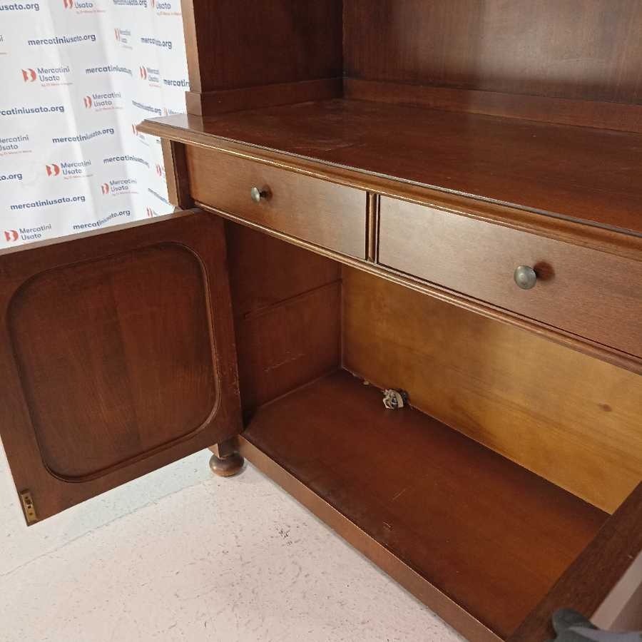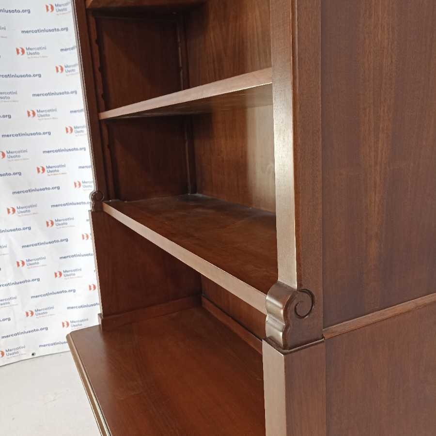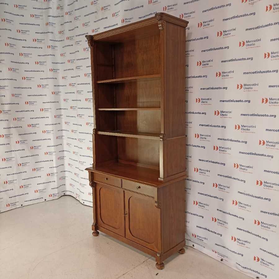 Libreria in stile Arte Povera. Struttura in legno intagliato. Ripiani regolabili. Richiede piccoli interventi di restauro.