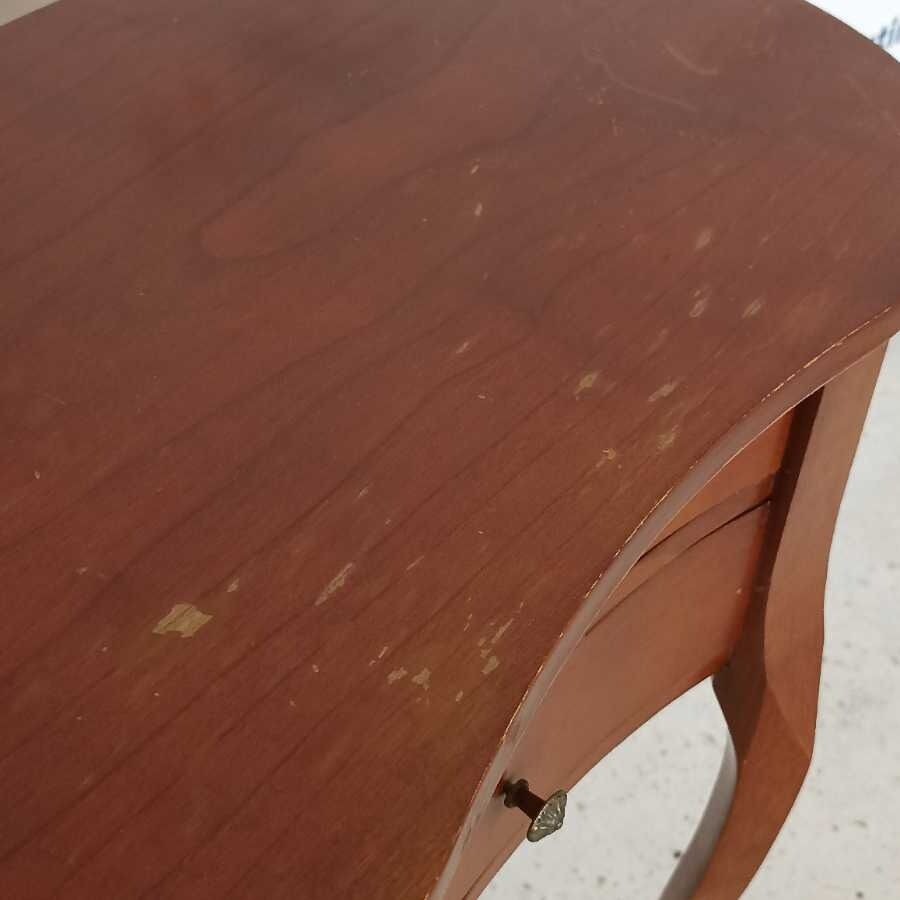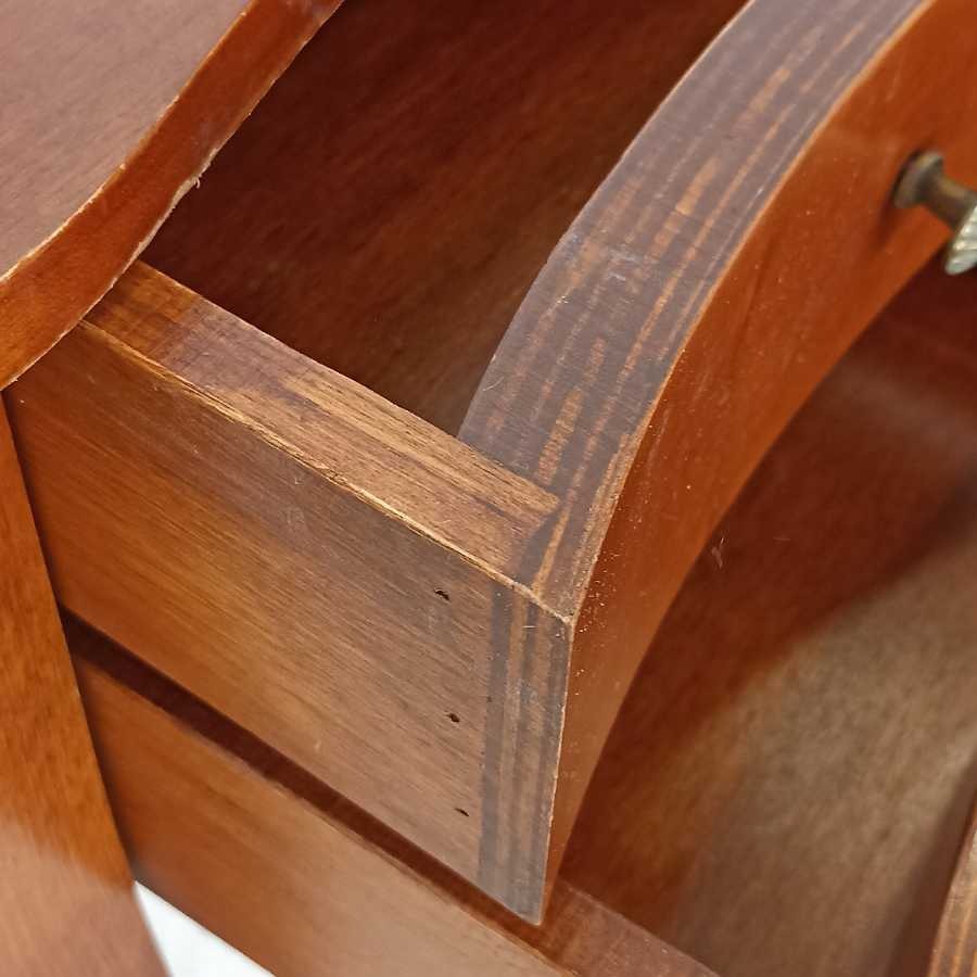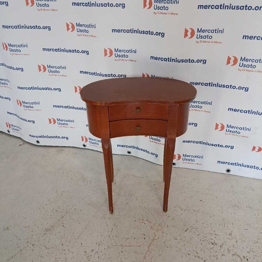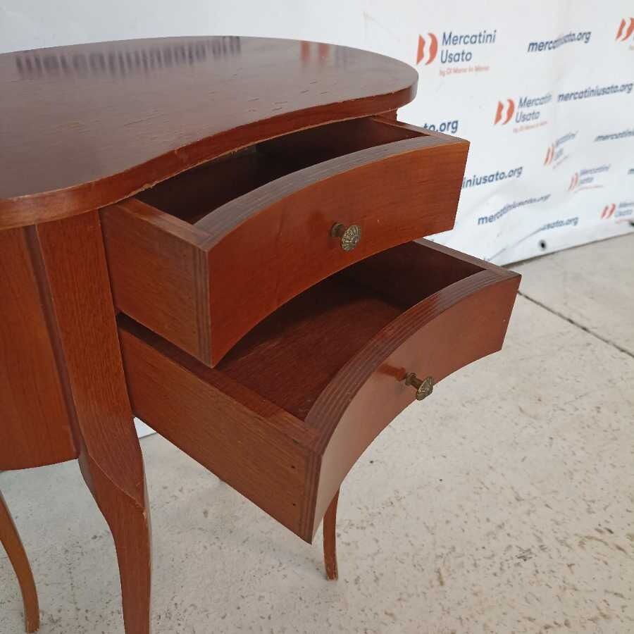 Comodino a fagiolo in stile. Struttura in legno con 2 cassetti. Richiede piccoli interventi di restauro.