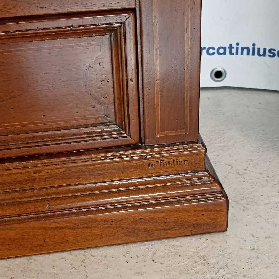 Coppia di Comodini Le Fablier. Struttura in legno massello con intarsi. In buone condizioni.