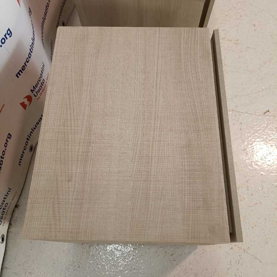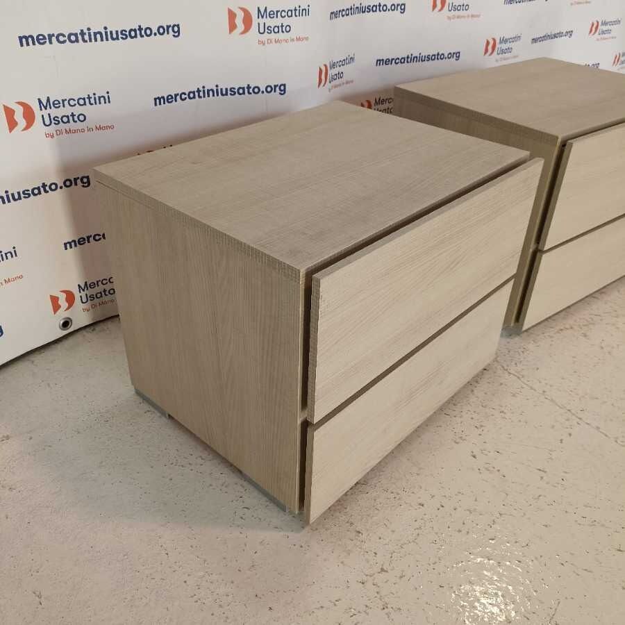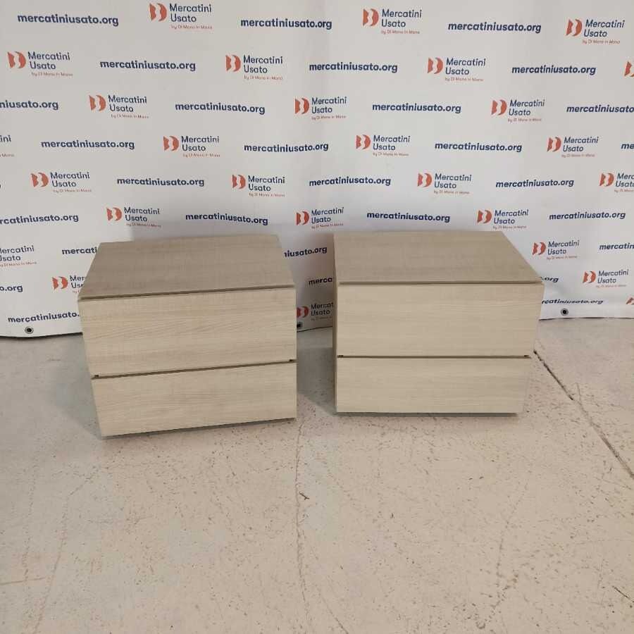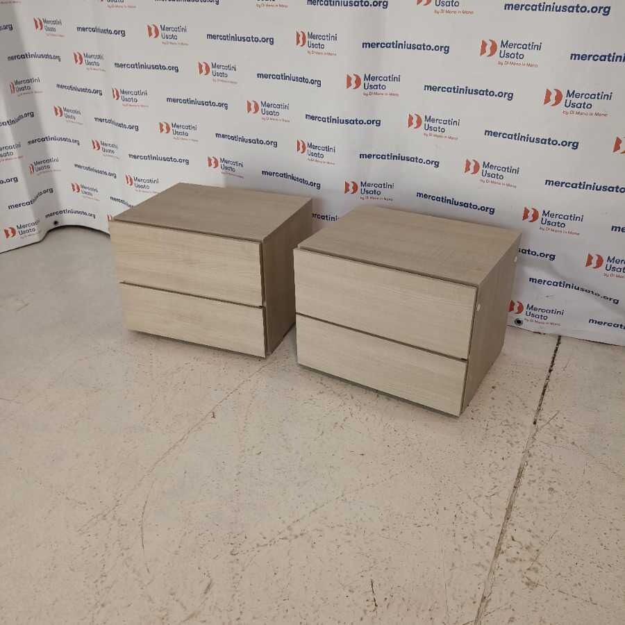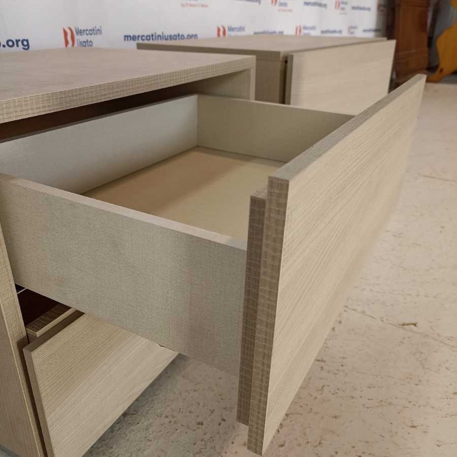 Coppia di Comodini moderni. Struttura in legno impiallacciato. Cassetti a pressione. Presentano piccoli segni di usura.