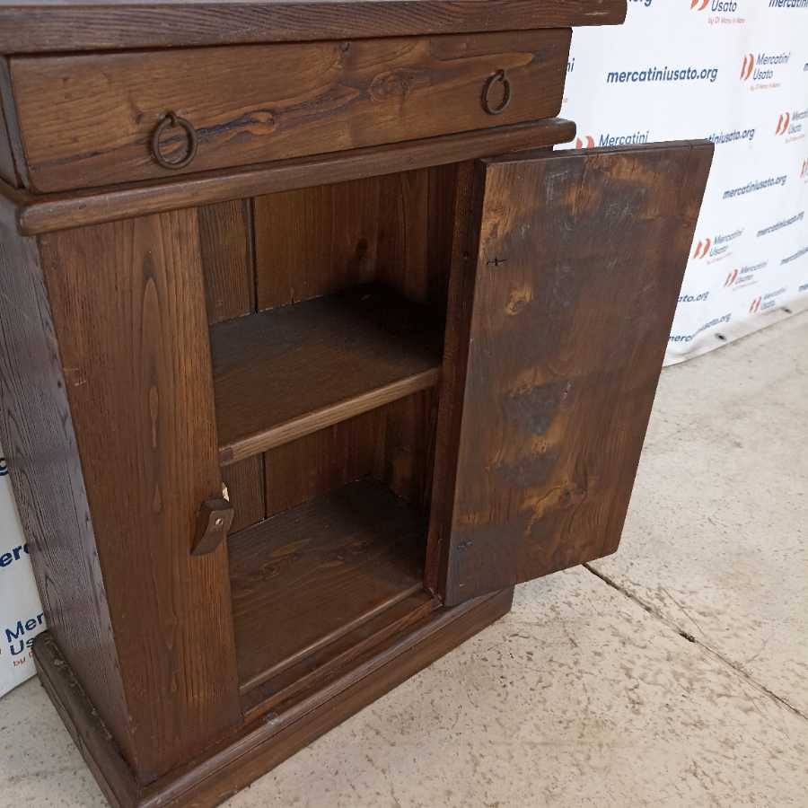 Piccola Credenza Rustica in legno massello. Struttura in legno massello con maniglie in ferro. In buone condizioni.