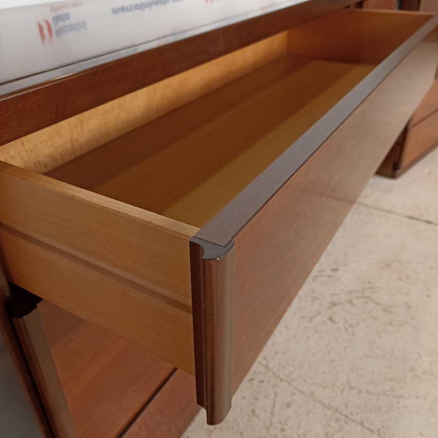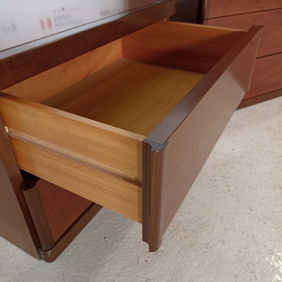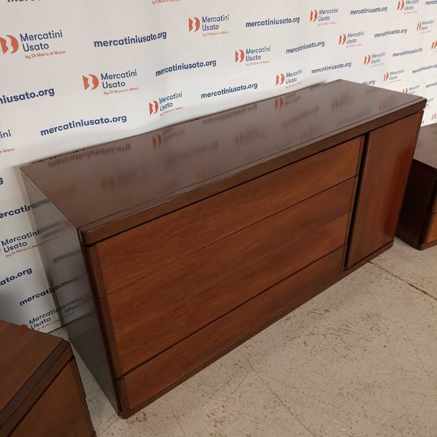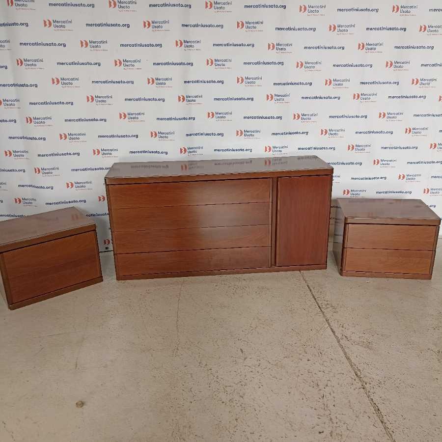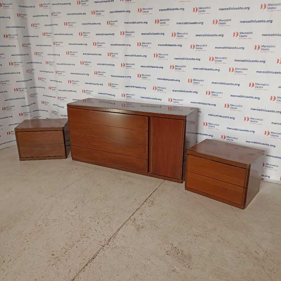 Cassettiera con Coppia di Comodini moderni. Struttura in legno impiallacciato. In buone condizioni.