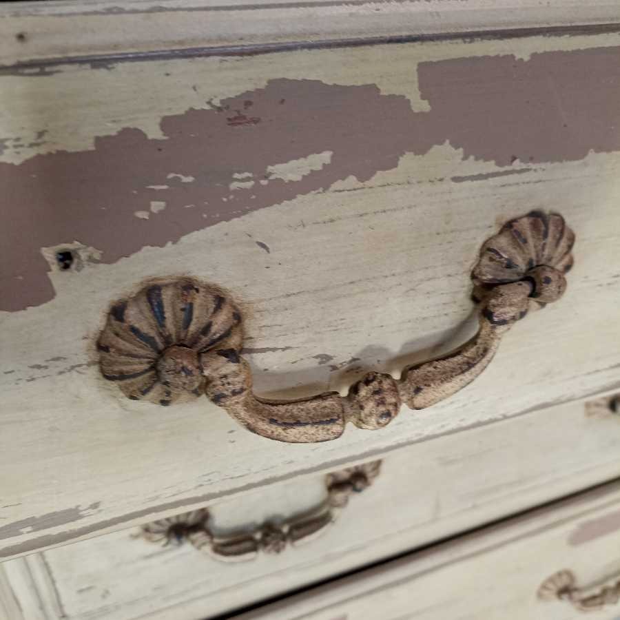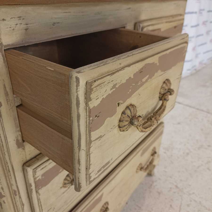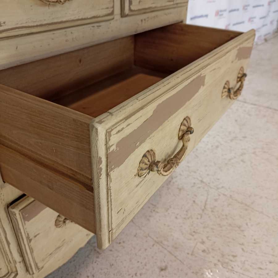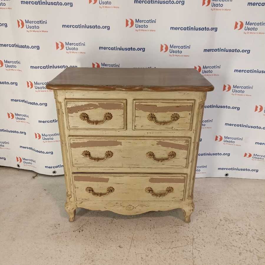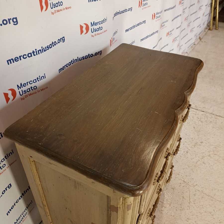 Cassettiera in stile Shabby chic. Struttura in legno massello intagliato e laccato. In buone condizioni.