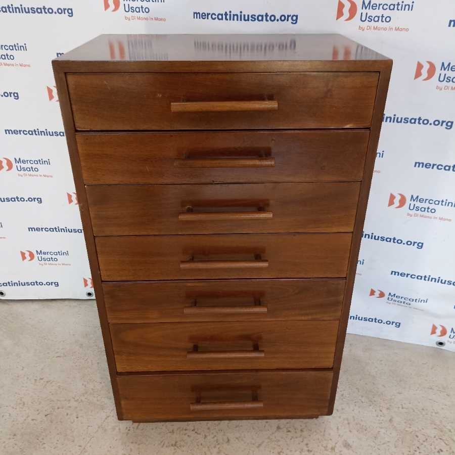 Cassettiera Vintage anni 60. Struttura in legno impiallacciato. In buone condizioni.