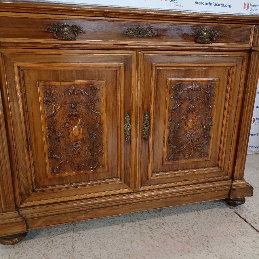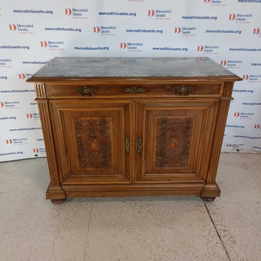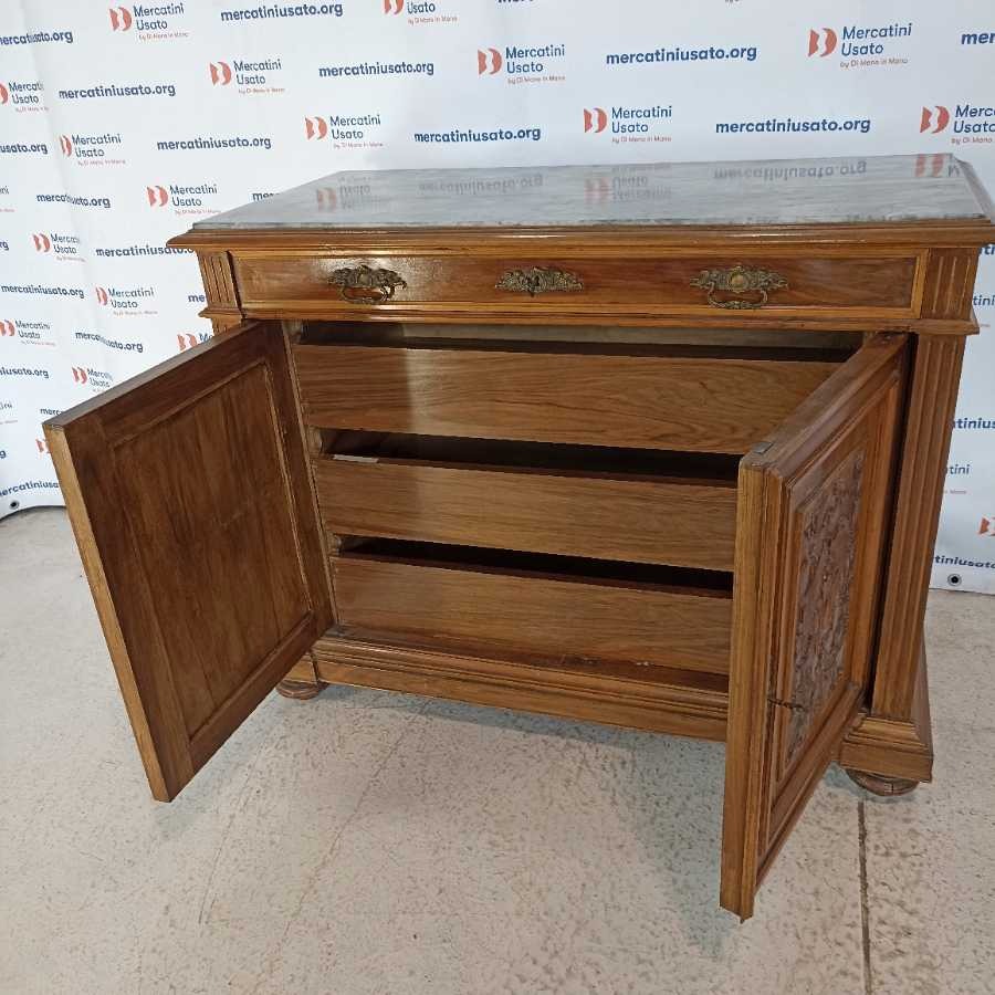 Credenza Rustica con marmo e cassetti. Struttura in legno intagliato con piano in marmo e cassetti interni. In buone condizioni.