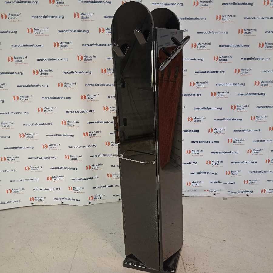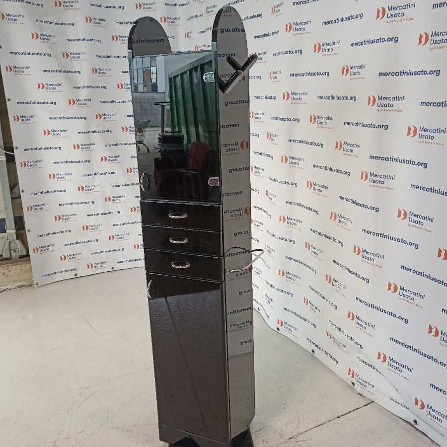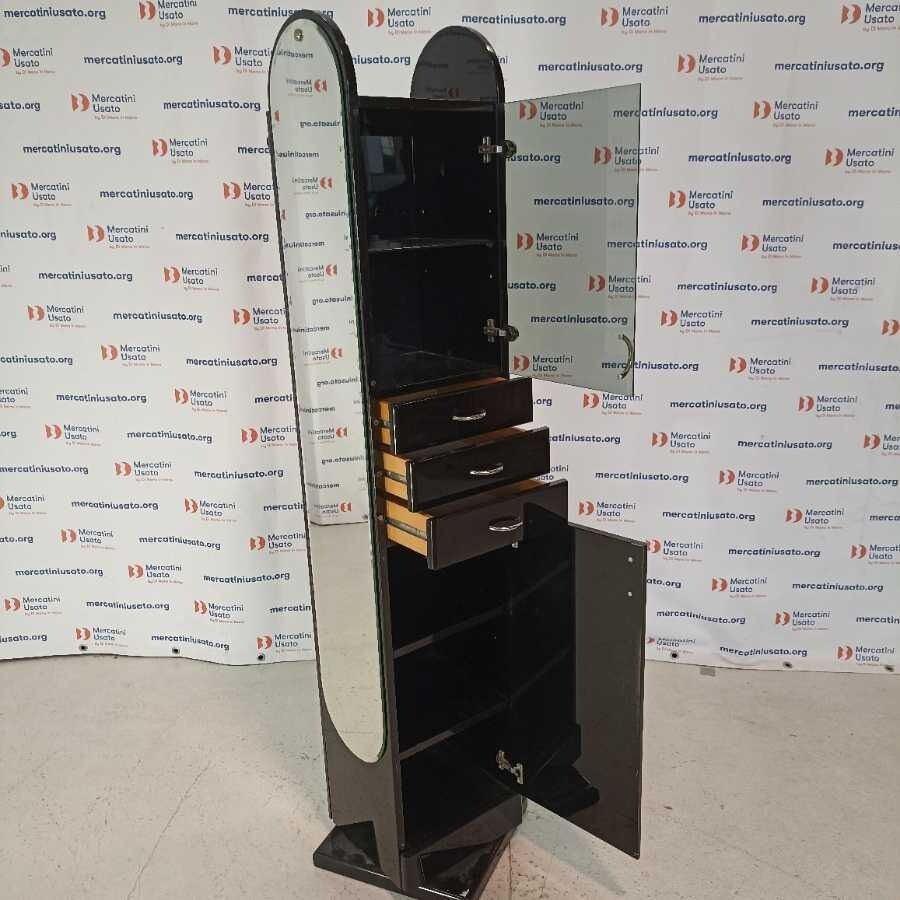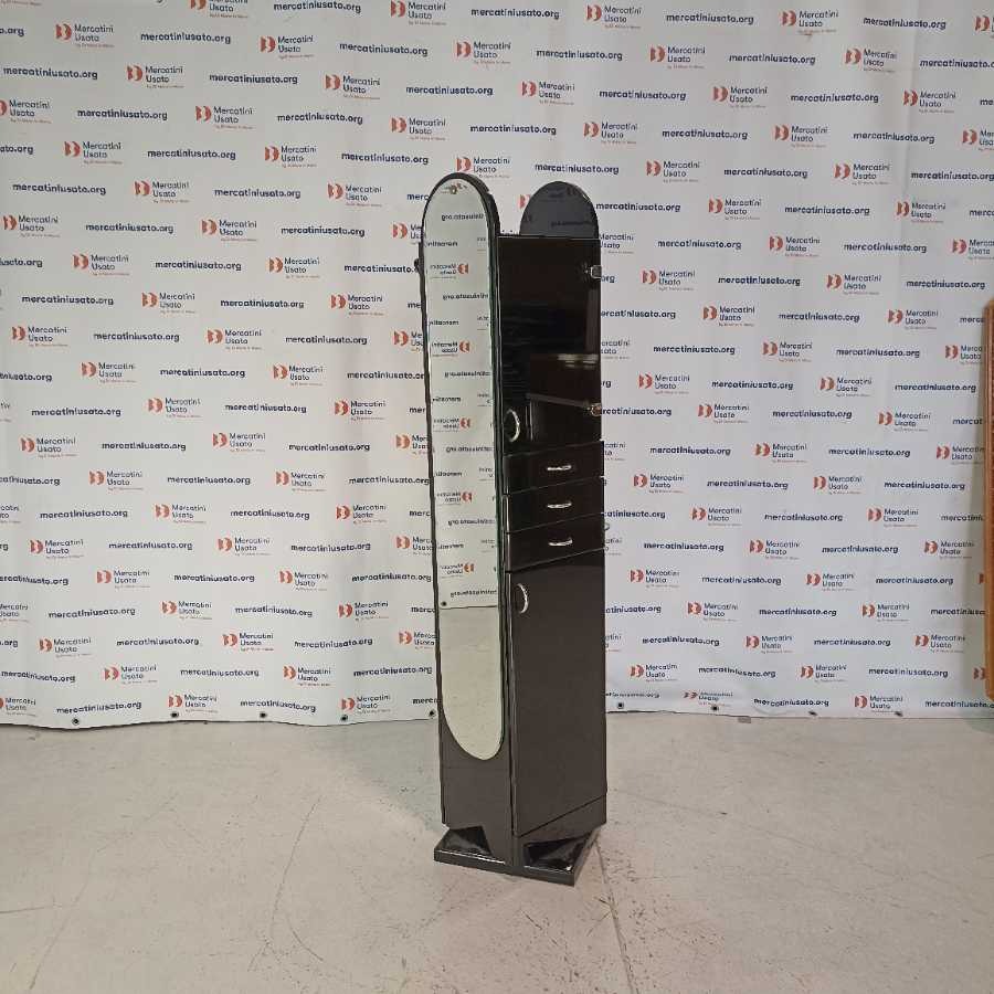 Mobile Bagno Girevole laccato nero. Struttura in legno laccato nero lucido con anta in vetro fumé e specchio su uno dei 4 lati. Presenta piccoli segni di usura.