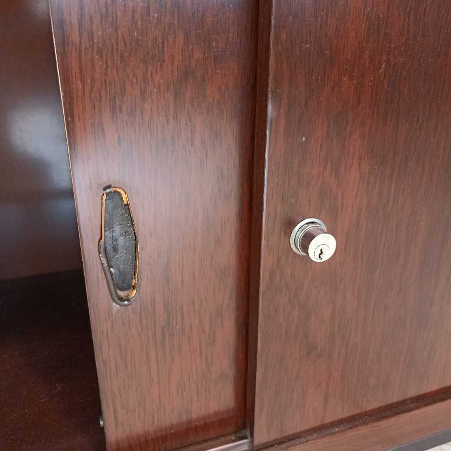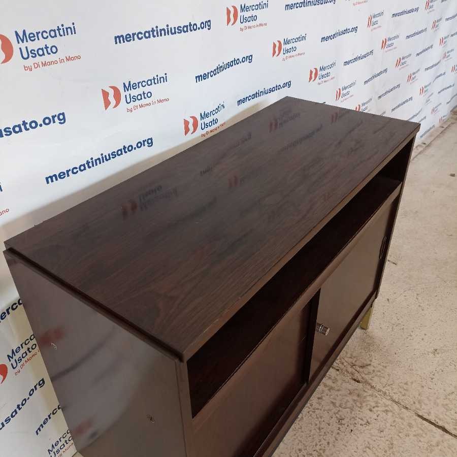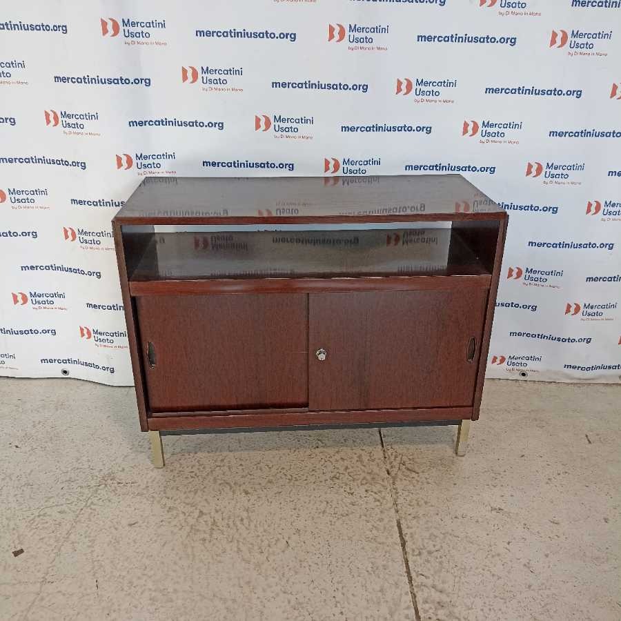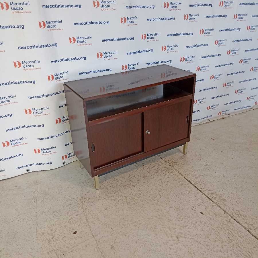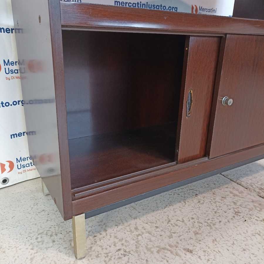Mobile con ante scorrevoli Design anni 60-70. Struttura in legno esotico. Richiede piccoli interventi di restauro.