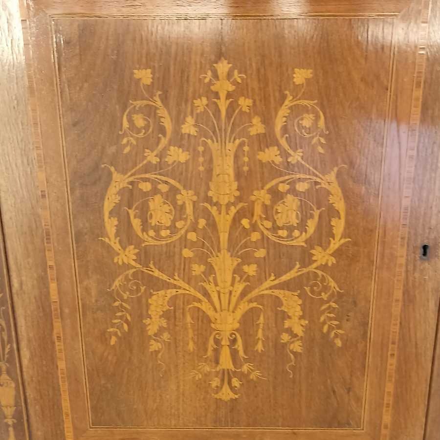 Mobile Highboard stile Luigi XVI. Struttura in legno intarsiato. Richiede restauri.