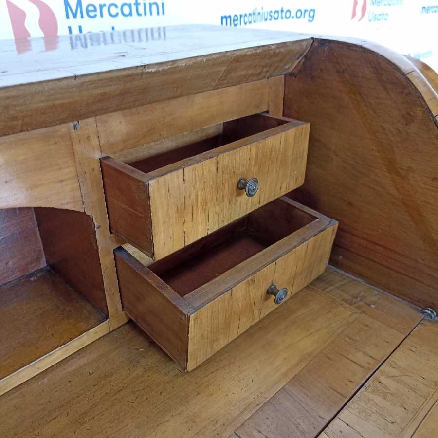 Ribalta lastronata di inizio 900 in stile. Struttura in legno intarsiato e lastronato. Richiede restauri.