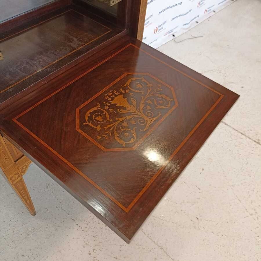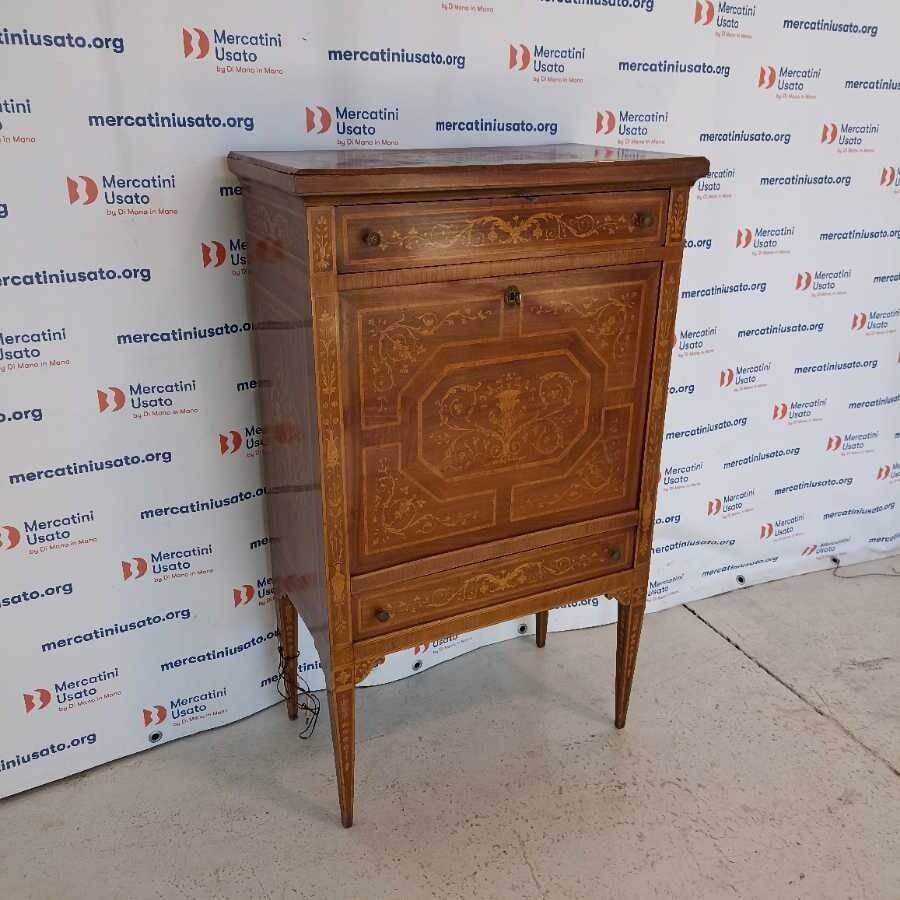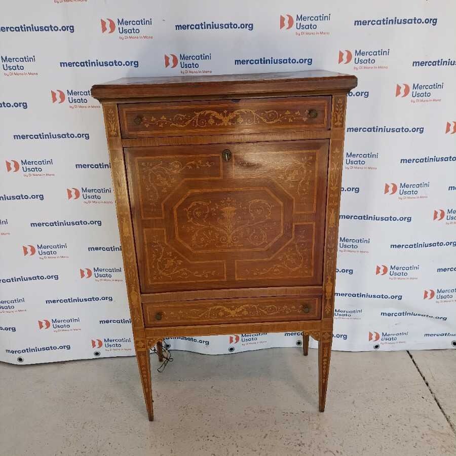Secrétaire in stile Luigi XVI. Struttura in legno intarsiato con interno a specchio. Richiede piccoli interventi di restauro.