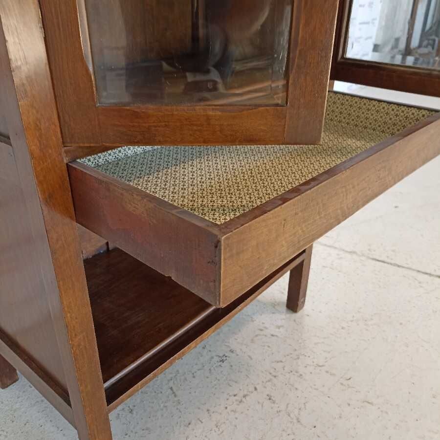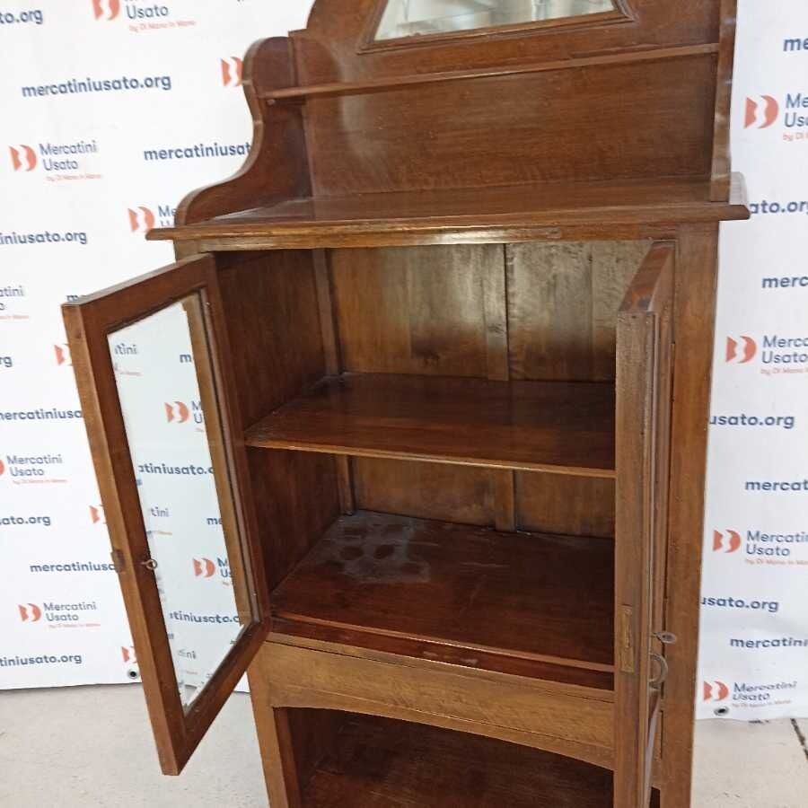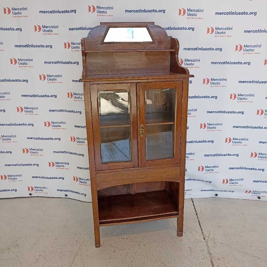 Vetrinetta stile Art Déco primi 900. Struttura in legno con ante e specchio in vetro molato. Richiede piccoli interventi di restauro.