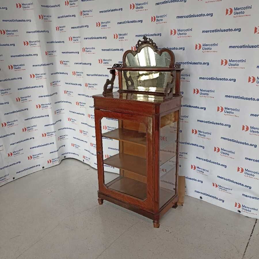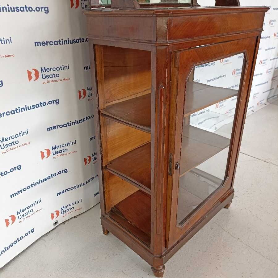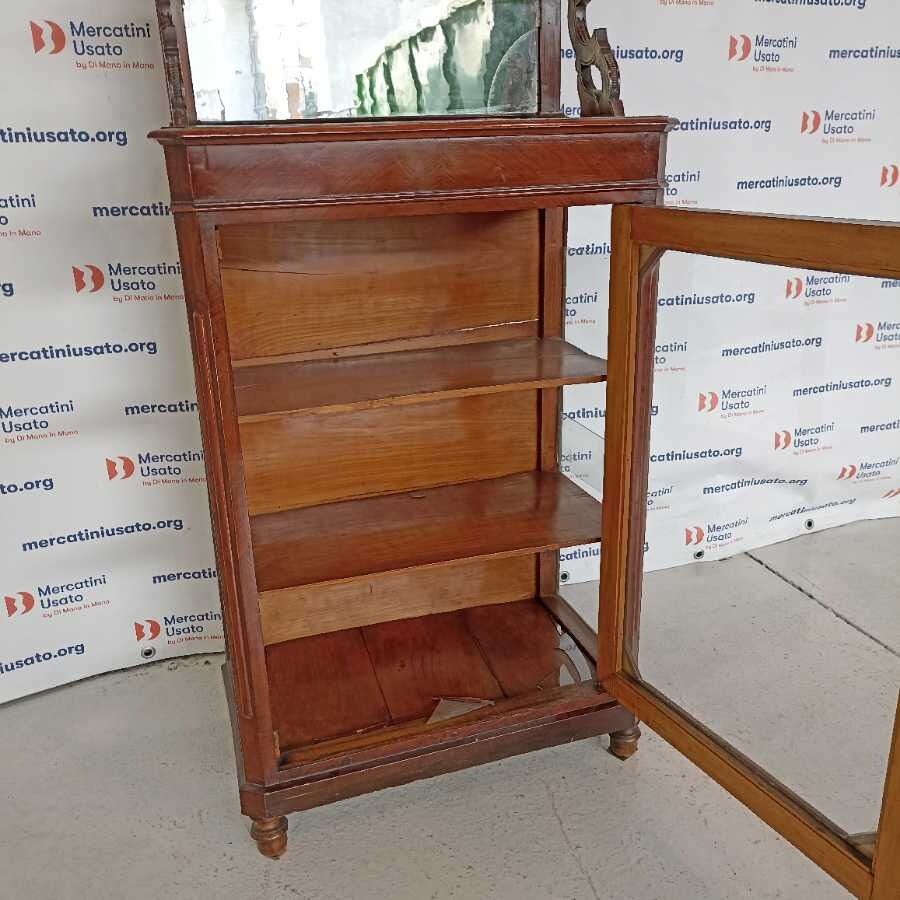 Vetrinetta Umbertina di fine 800. Struttura in legno lastronato. Vetri mancanti. Richiede restauro.