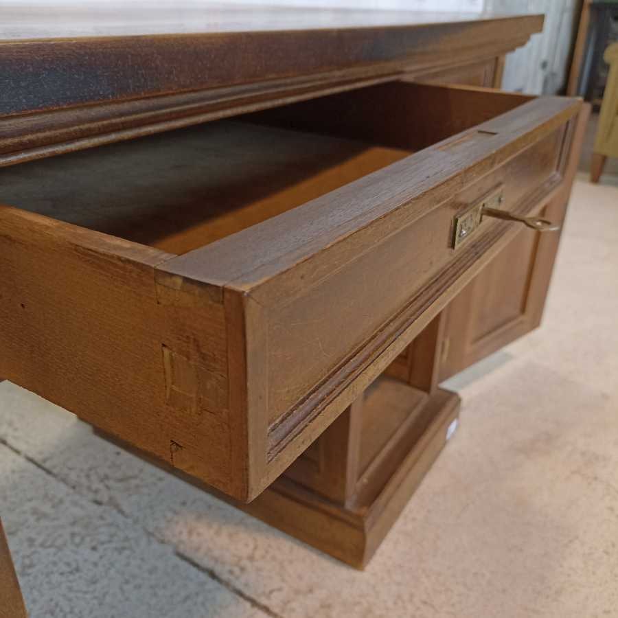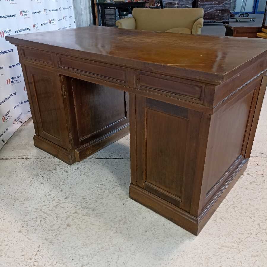 Scrivania in stile della prima metà del 900. Struttura in legno lastronato. Richiede piccoli interventi di restauro.