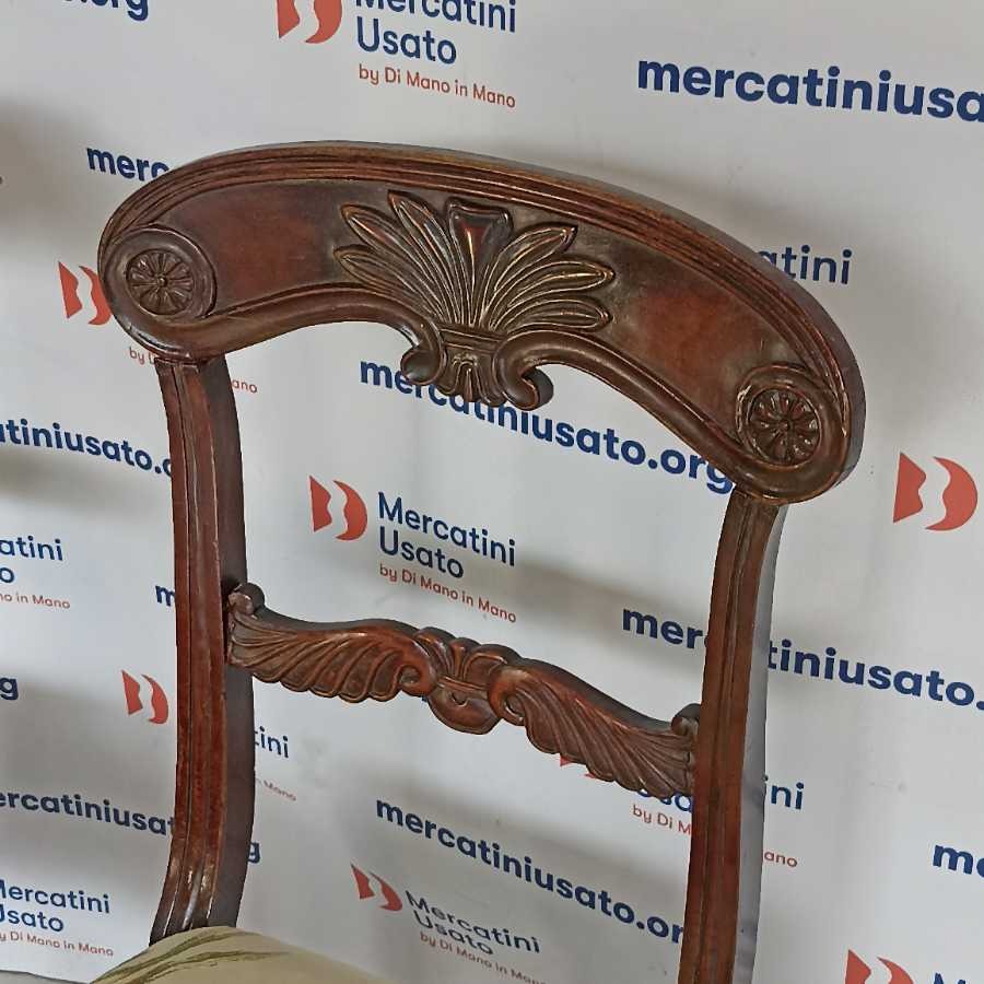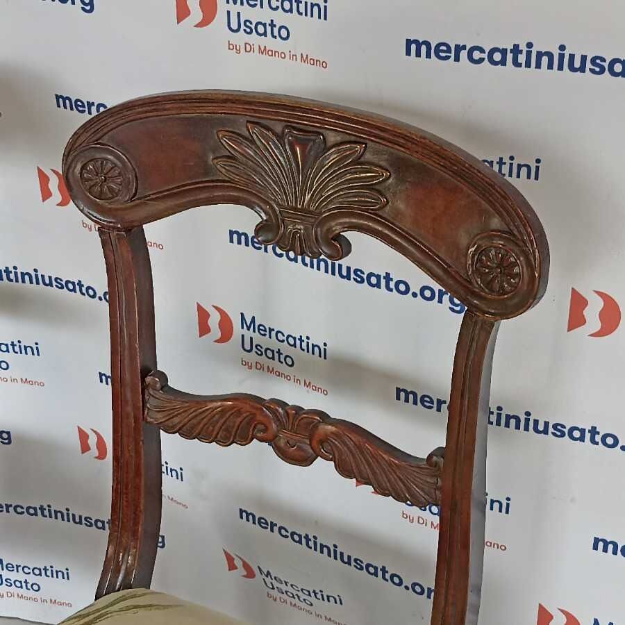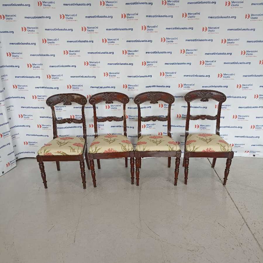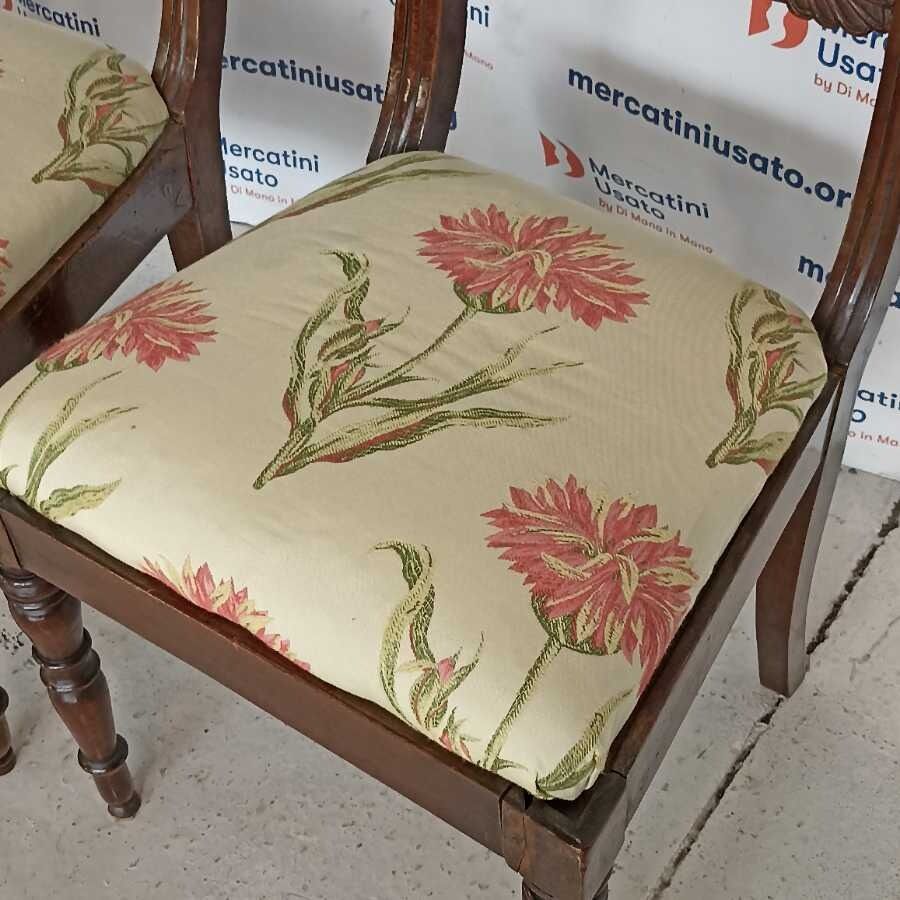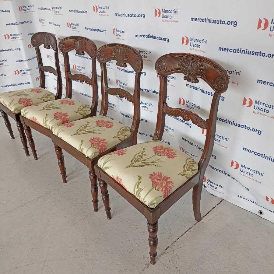 Gruppo di 4 Sedie antiche di metà 800. Struttura in legno di Noce intagliato. Rivestimento in tessuto. Richiedono restauri.