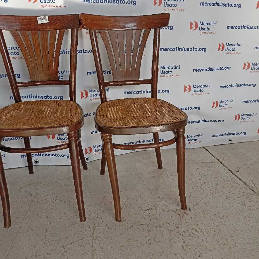 Gruppo di 4 Sedie da osteria in stile Thonet. Struttura in legno di faggio con seduta in paglia di Vienna. Richiedono restauri.