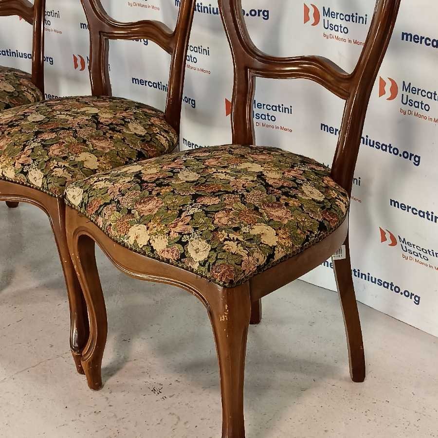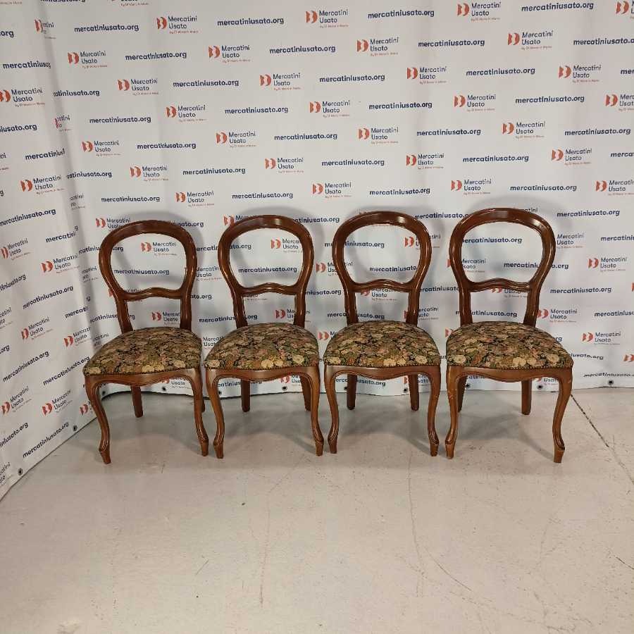 Gruppo di 4 Sedie in stile Luigi Filippo di metà 900. Struttura in legno intagliato con rivestimento in tessuto. In buone condizioni.