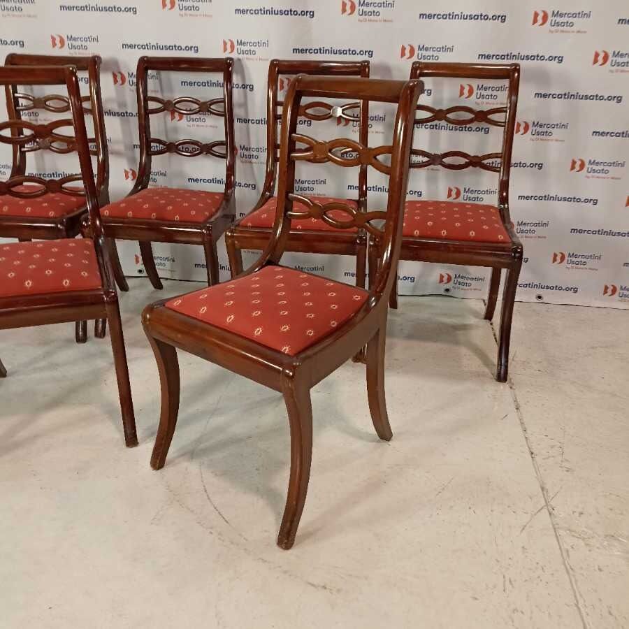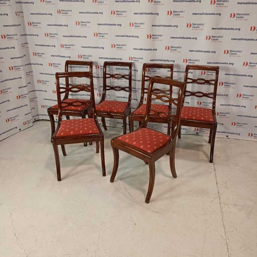 Gruppo di 6 Sedie Antiche di inizio 900. Struttura in legno intagliato con seduta in tessuto. In buone condizioni.