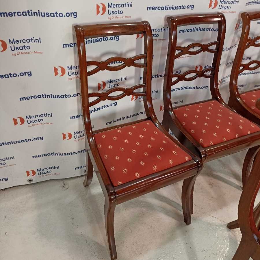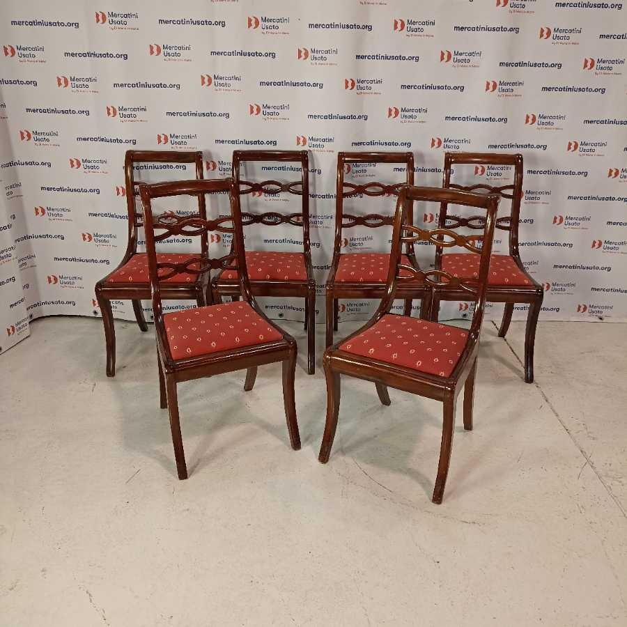 Gruppo di 6 Sedie Antiche di inizio 900. Struttura in legno intagliato con seduta in tessuto. In buone condizioni.