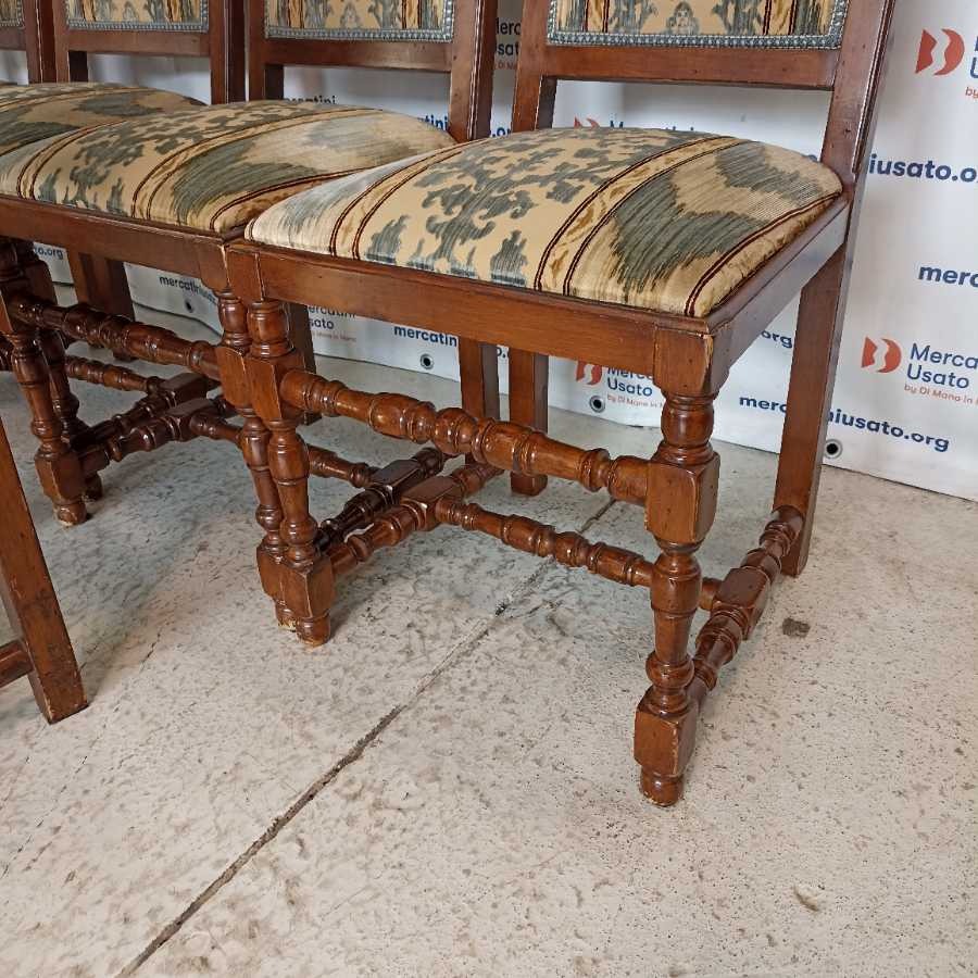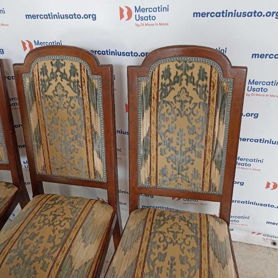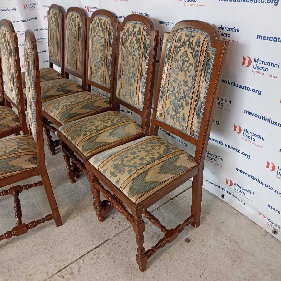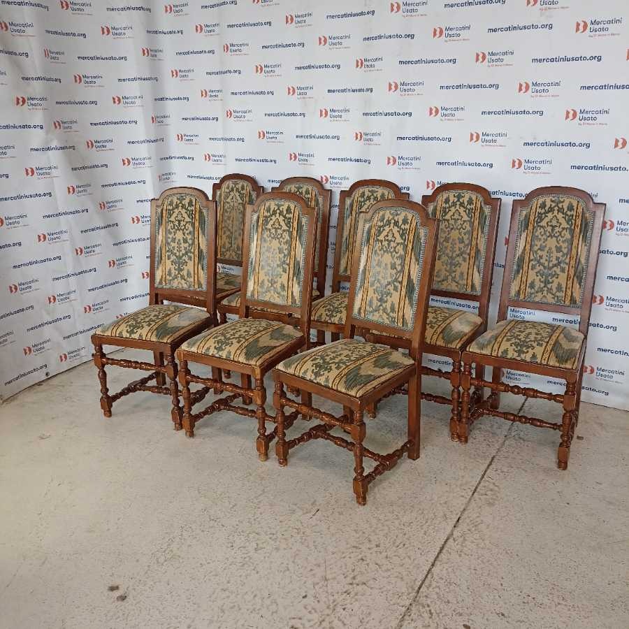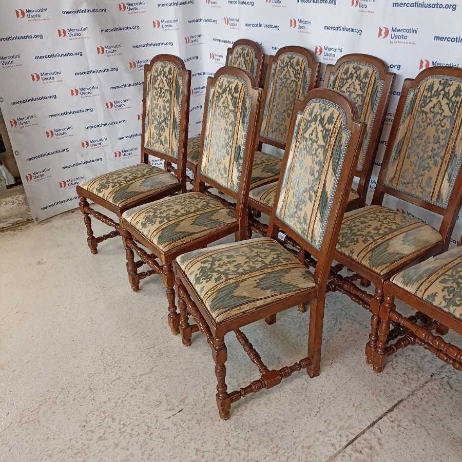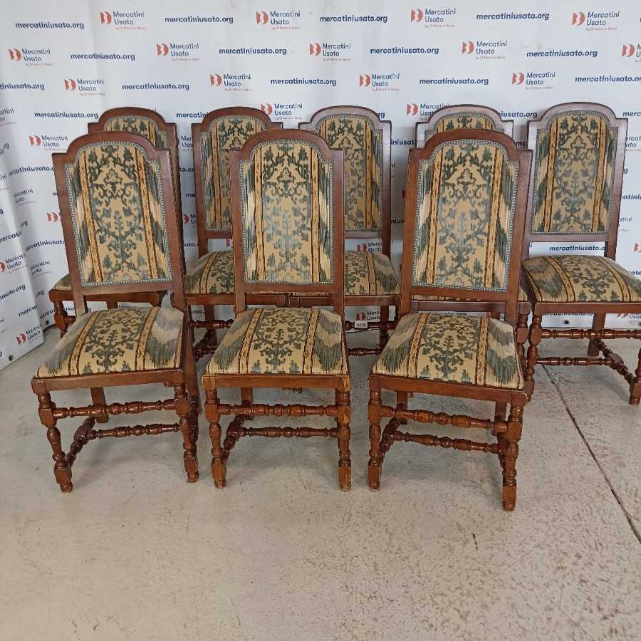 Gruppo di 8 Sedie in stile prima metà 900. Struttura in legno tornito con rivestimento in tessuto. In buone condizioni, presentano segni del tempo.