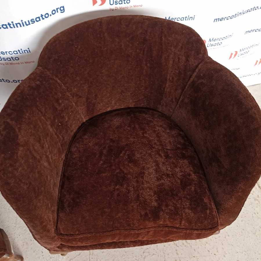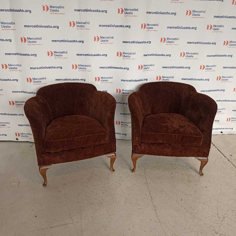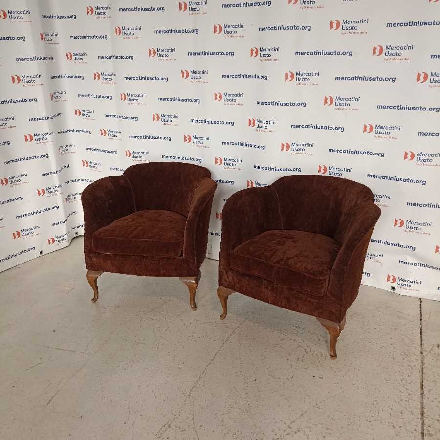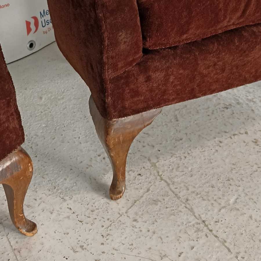 Coppia di Poltrone in velluto in stile. Struttura in legno con rivestimento in velluto color marrone. In buone condizioni.