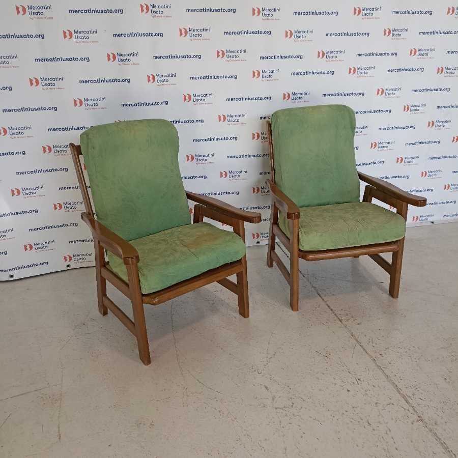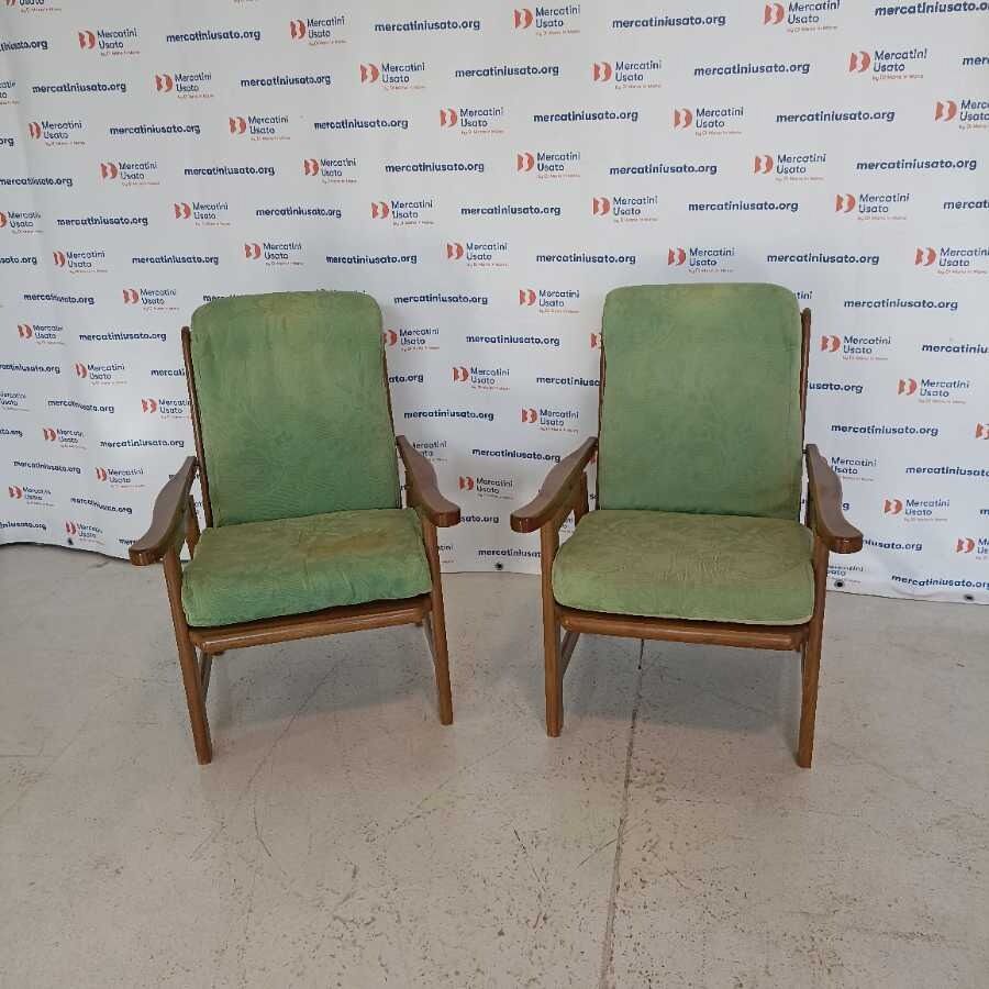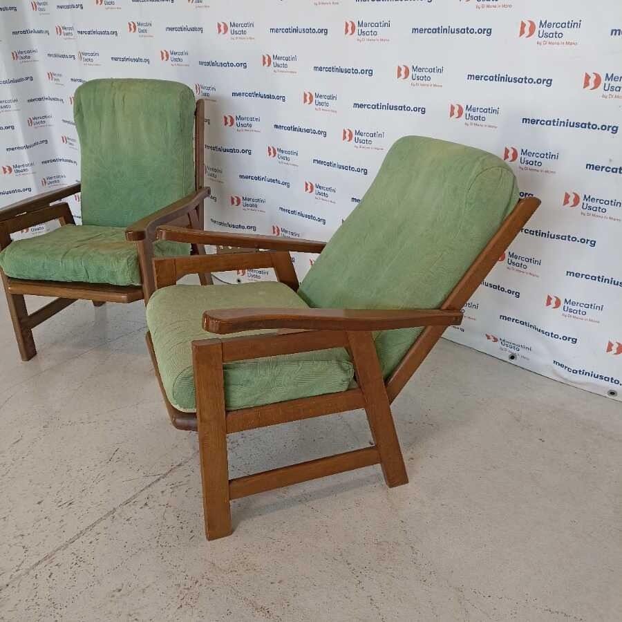 Coppia di Poltrone reclinabili Vintage. Struttura in legno con rivestimento in tessuto completamente sfoderabile. Presentano piccoli segni di usura.