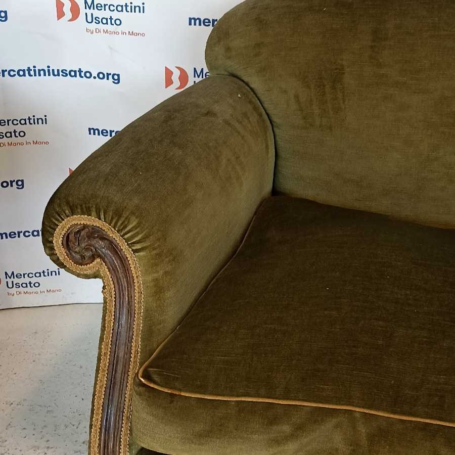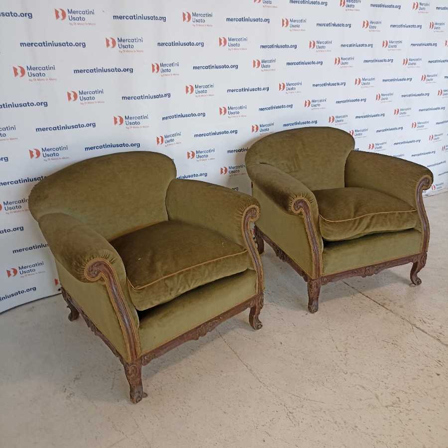Coppia di Poltrone in stile Barocco. Struttura in legno intagliato con rivestimento in velluto verde. Richiedono piccoli interventi di restauro.