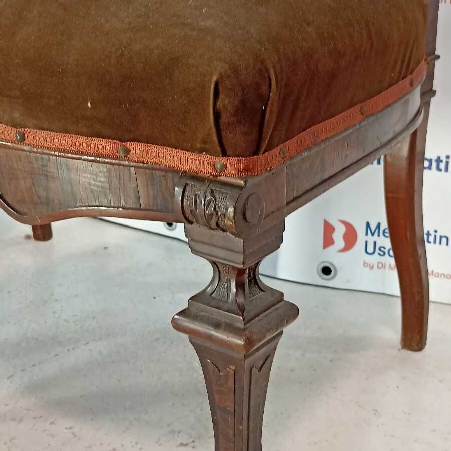 Coppia di Sedie da Camera prima metà 900. Struttura in legno di noce intagliato con rivestimento in tessuto. In buone condizioni.