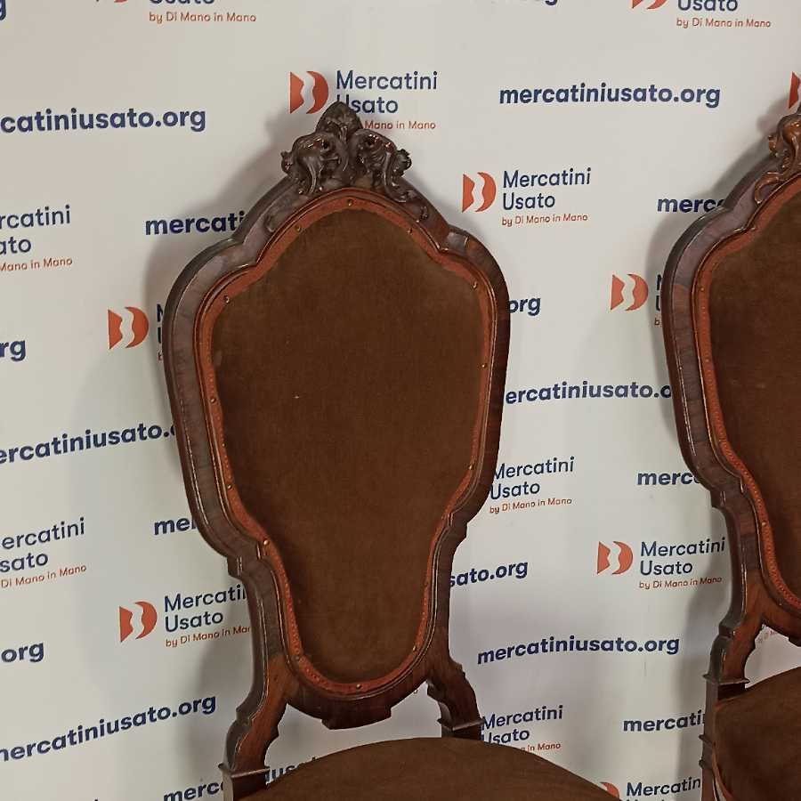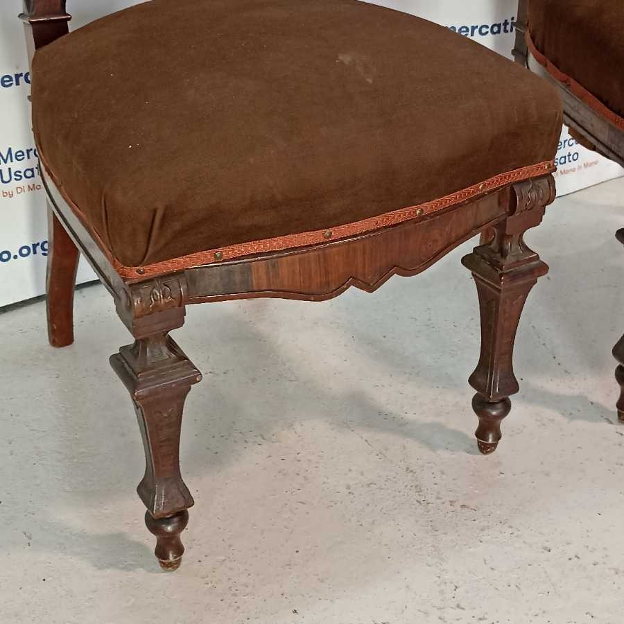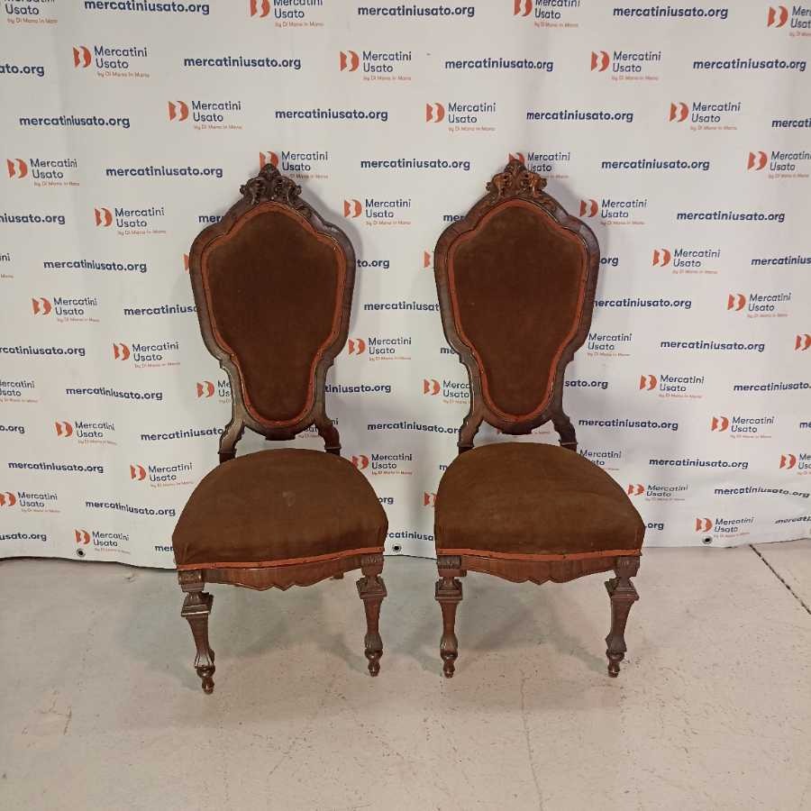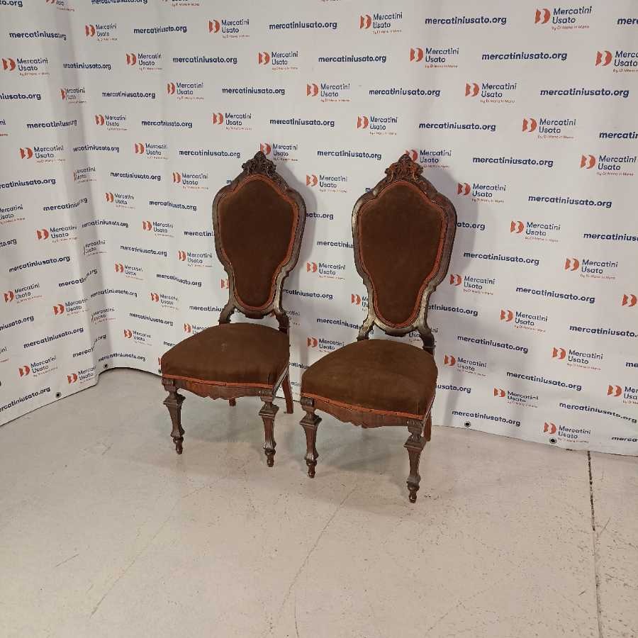 Coppia di Sedie da Camera prima metà 900. Struttura in legno di noce intagliato con rivestimento in tessuto. In buone condizioni.