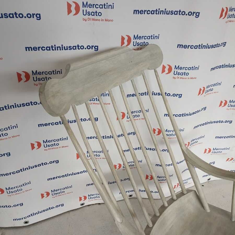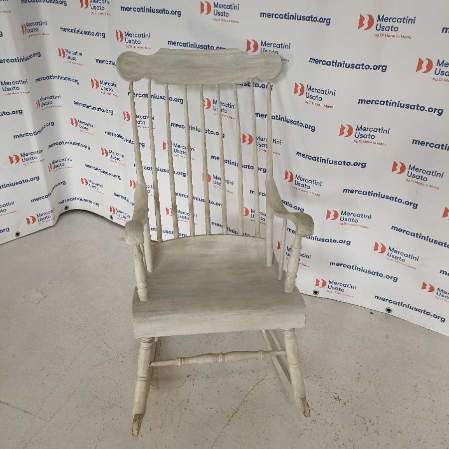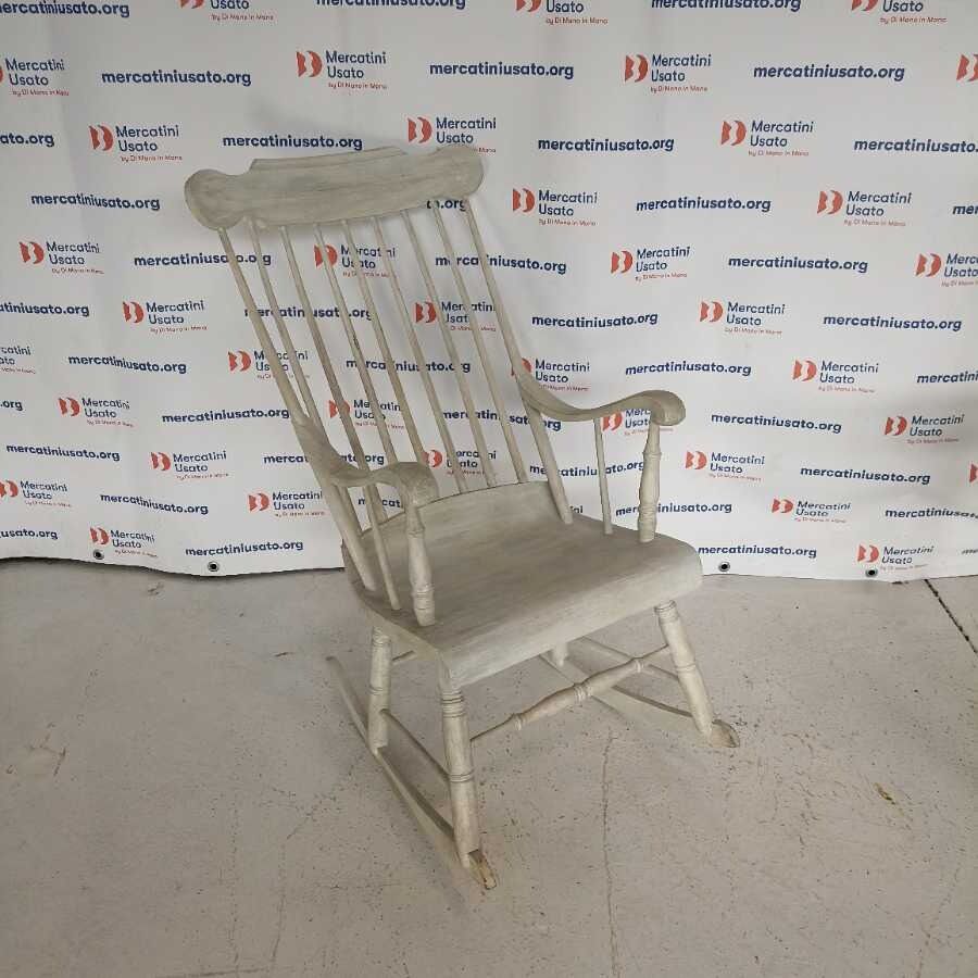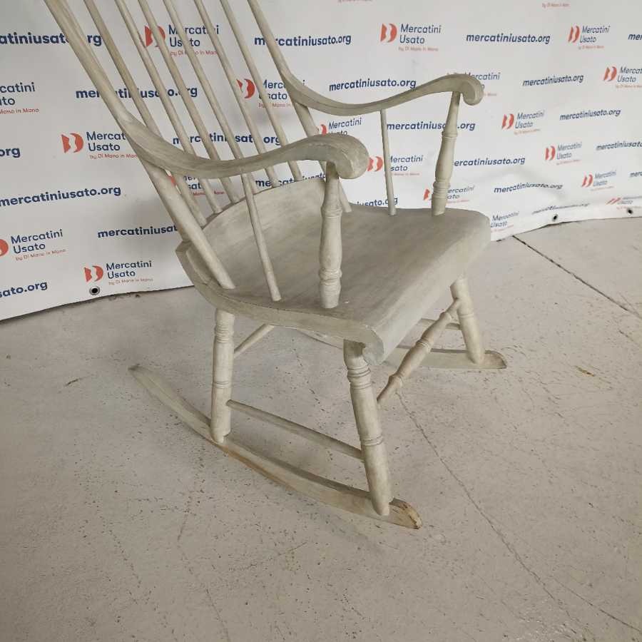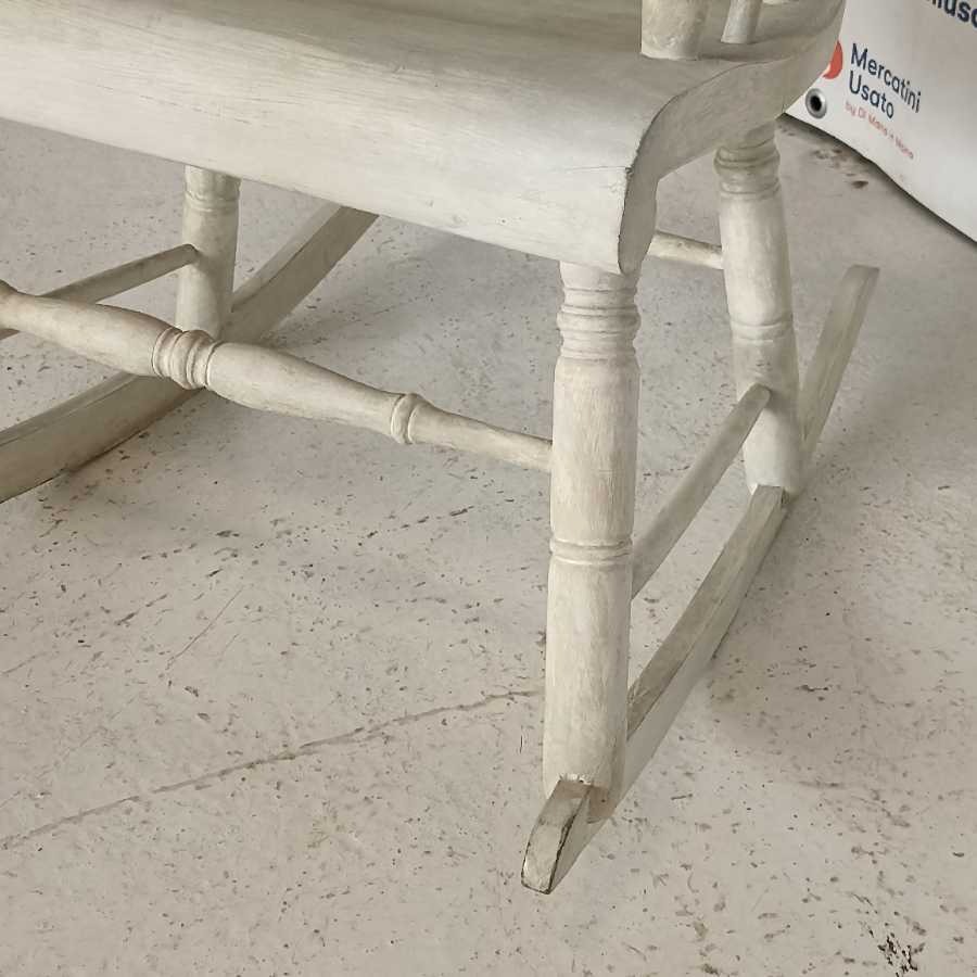 Poltrona a dondolo stile Shabby. Struttura in legno laccato bianco.