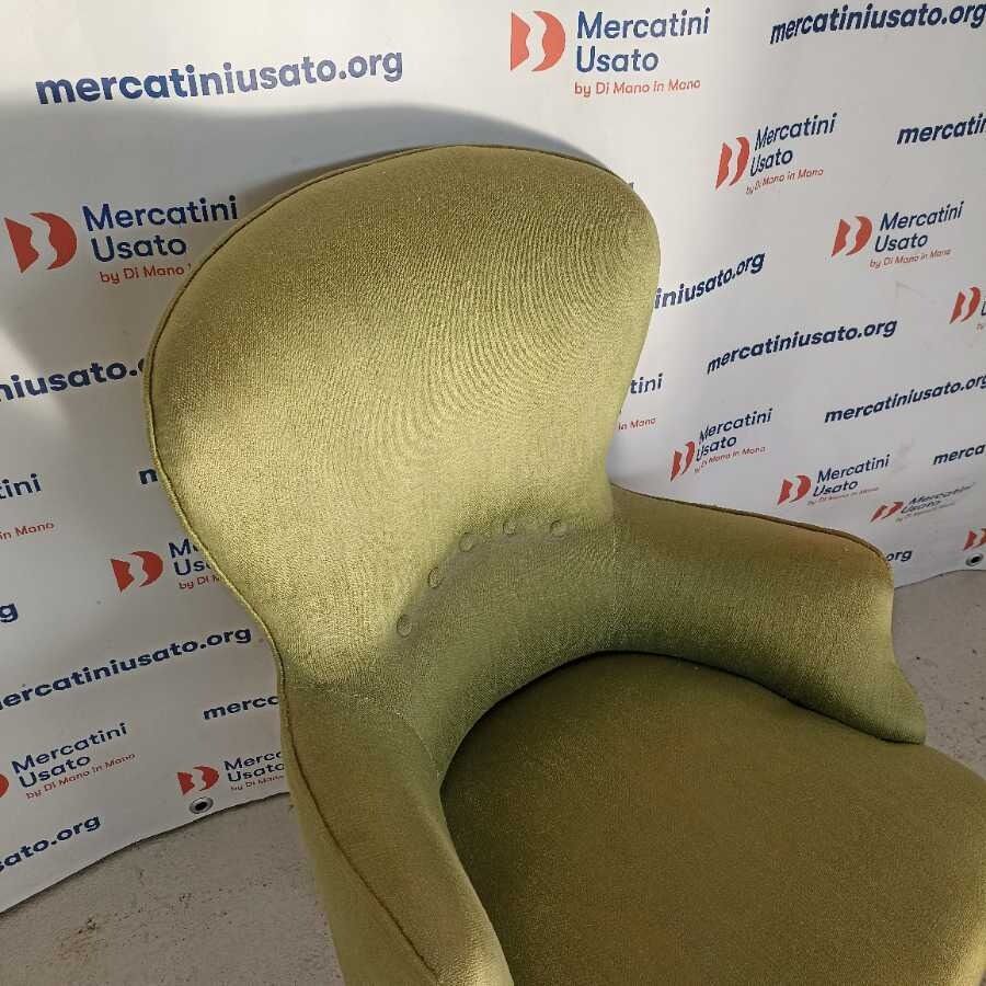 Poltrona Vintage anni 60-70. Rivestimento in tessuto verde. Presenta segni del tempo.