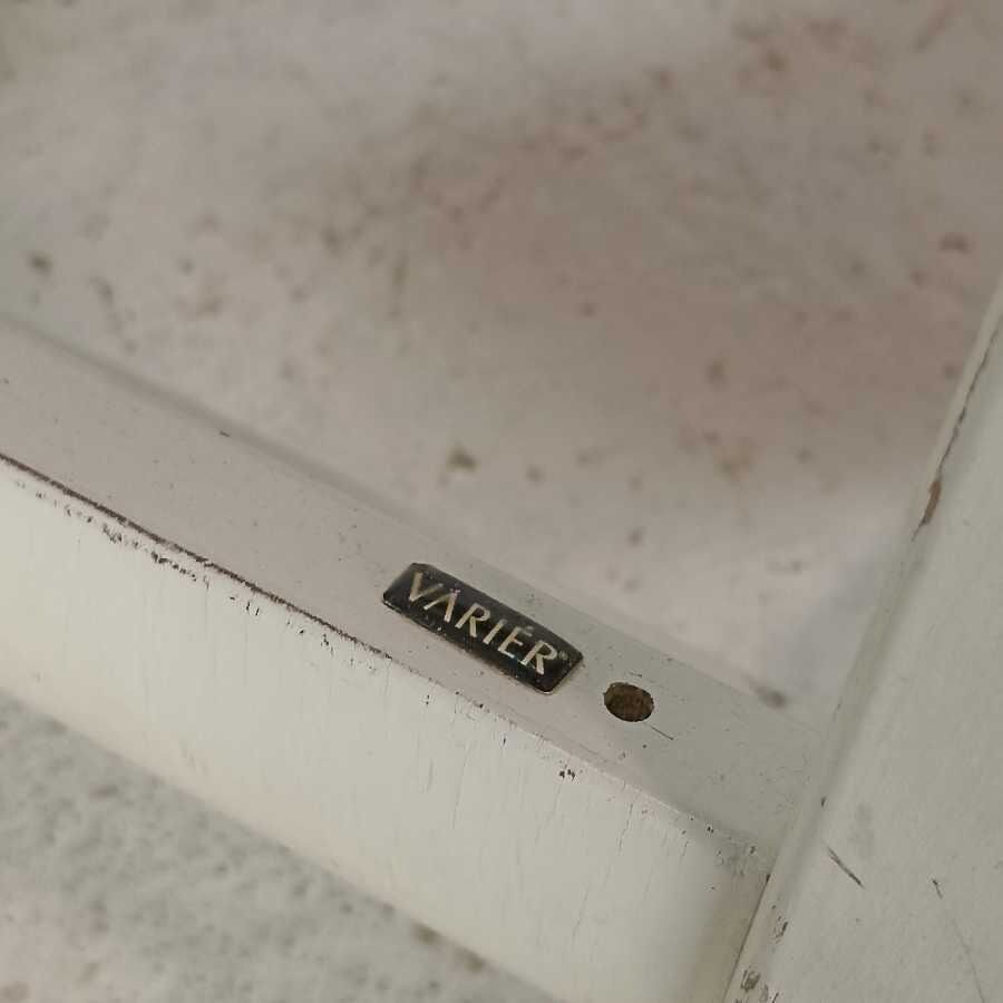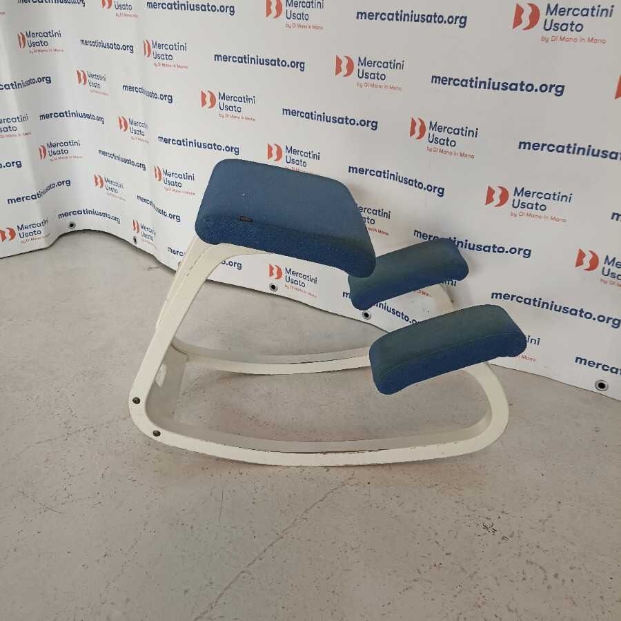 Sedia Ergonomica posturale Varier. Struttura in legno laccato bianco. Richiede piccoli interventi di restauro.