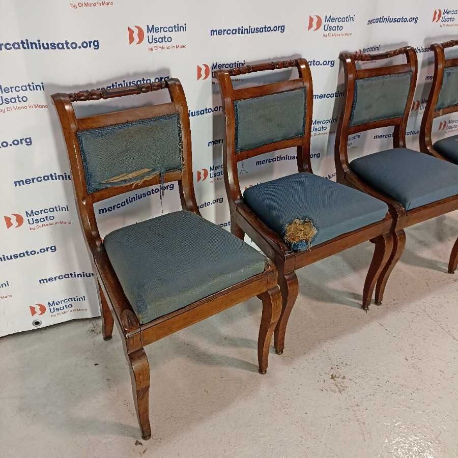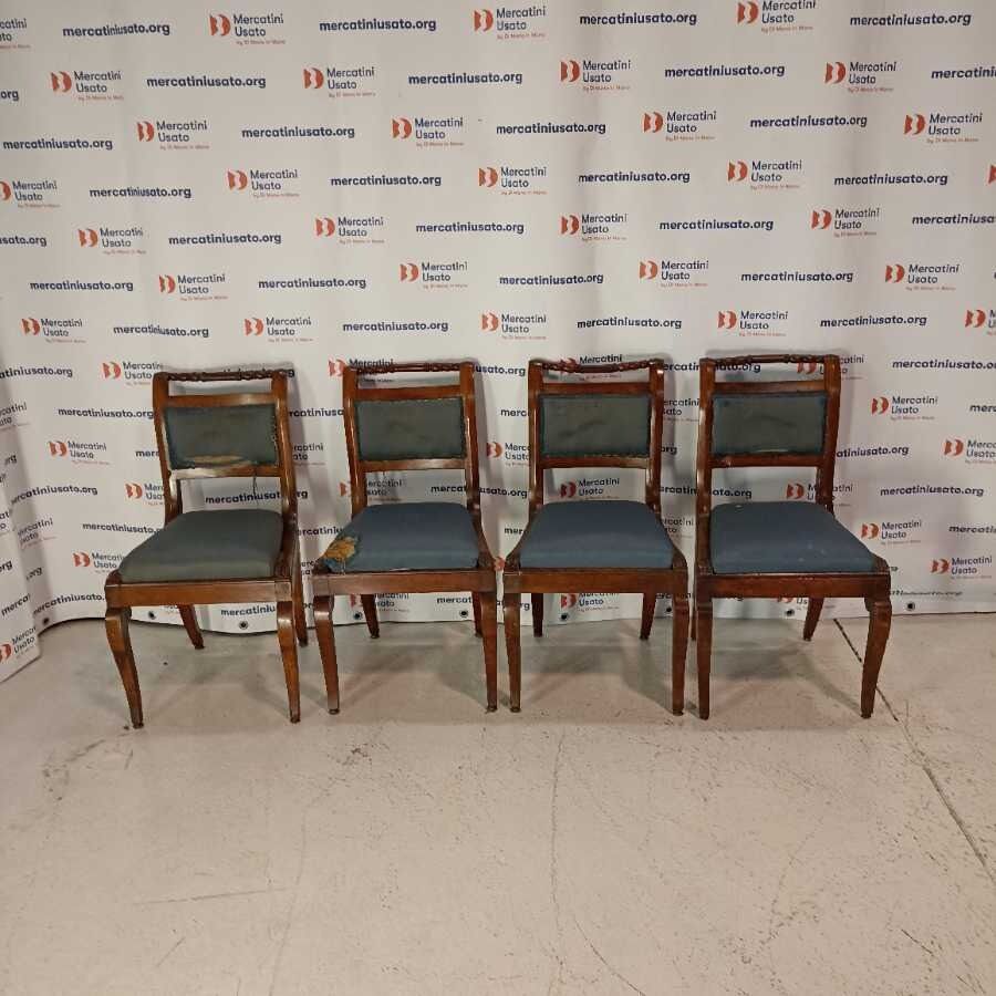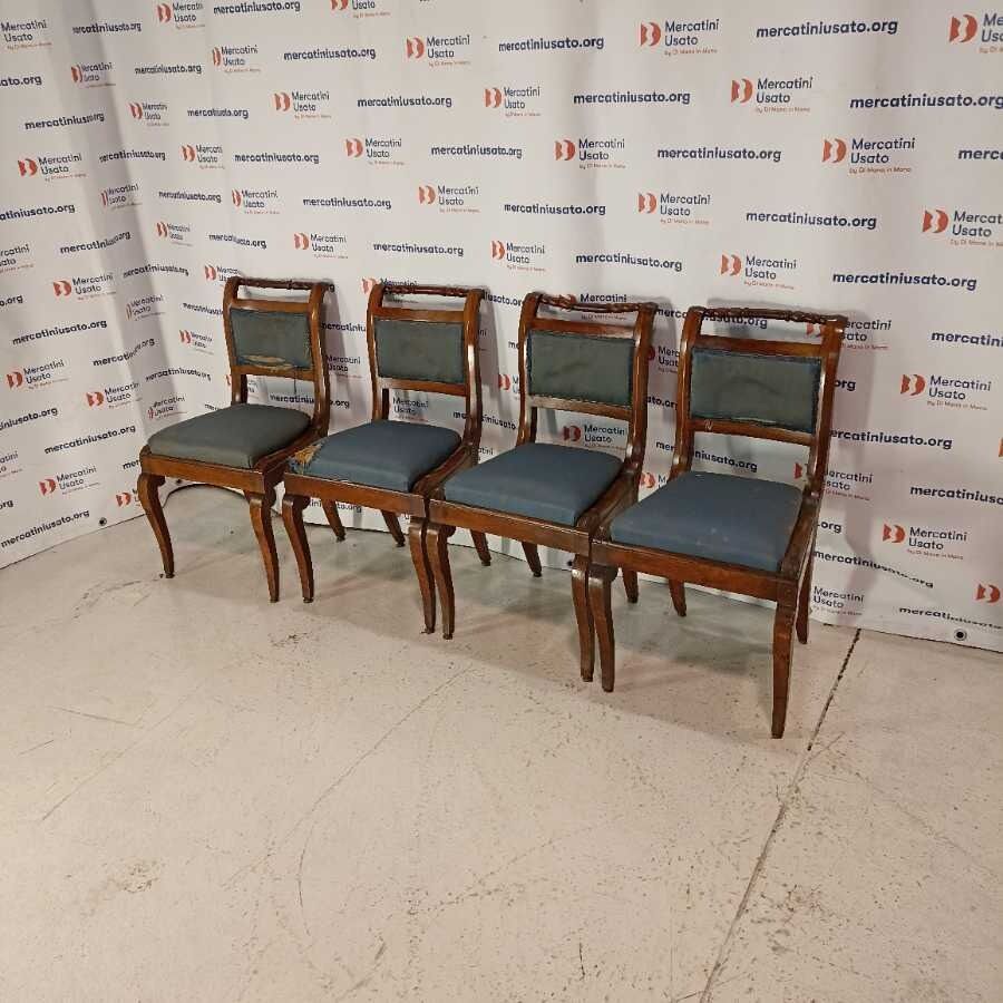 Gruppo di 4 Sedie Antiche di metà 800. Struttura in legno di Noce intagliato. Richiedono interventi di restauro.